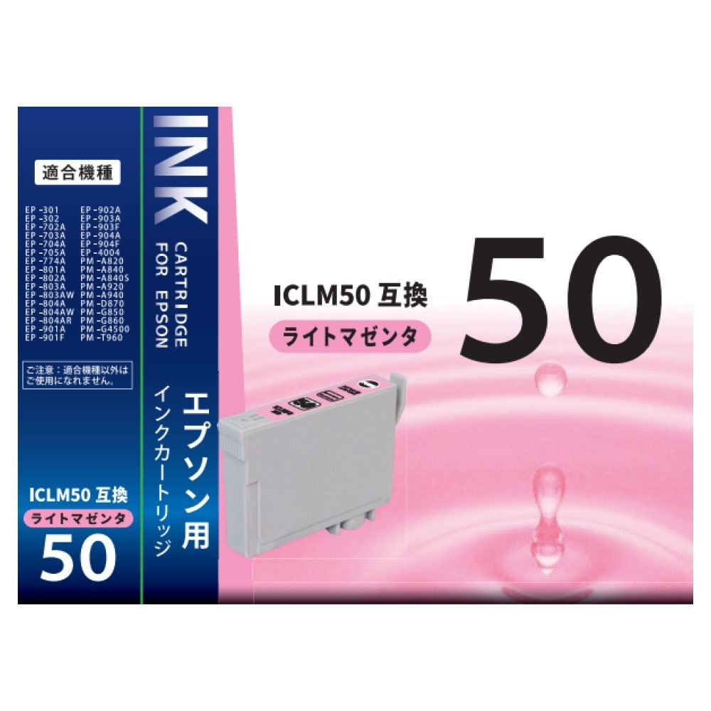 エプソン、純正インクカートリッジ、ICLM50、染料ライトマゼンタ、互換インクカートリッジ、1個入り、残量表示完全対応