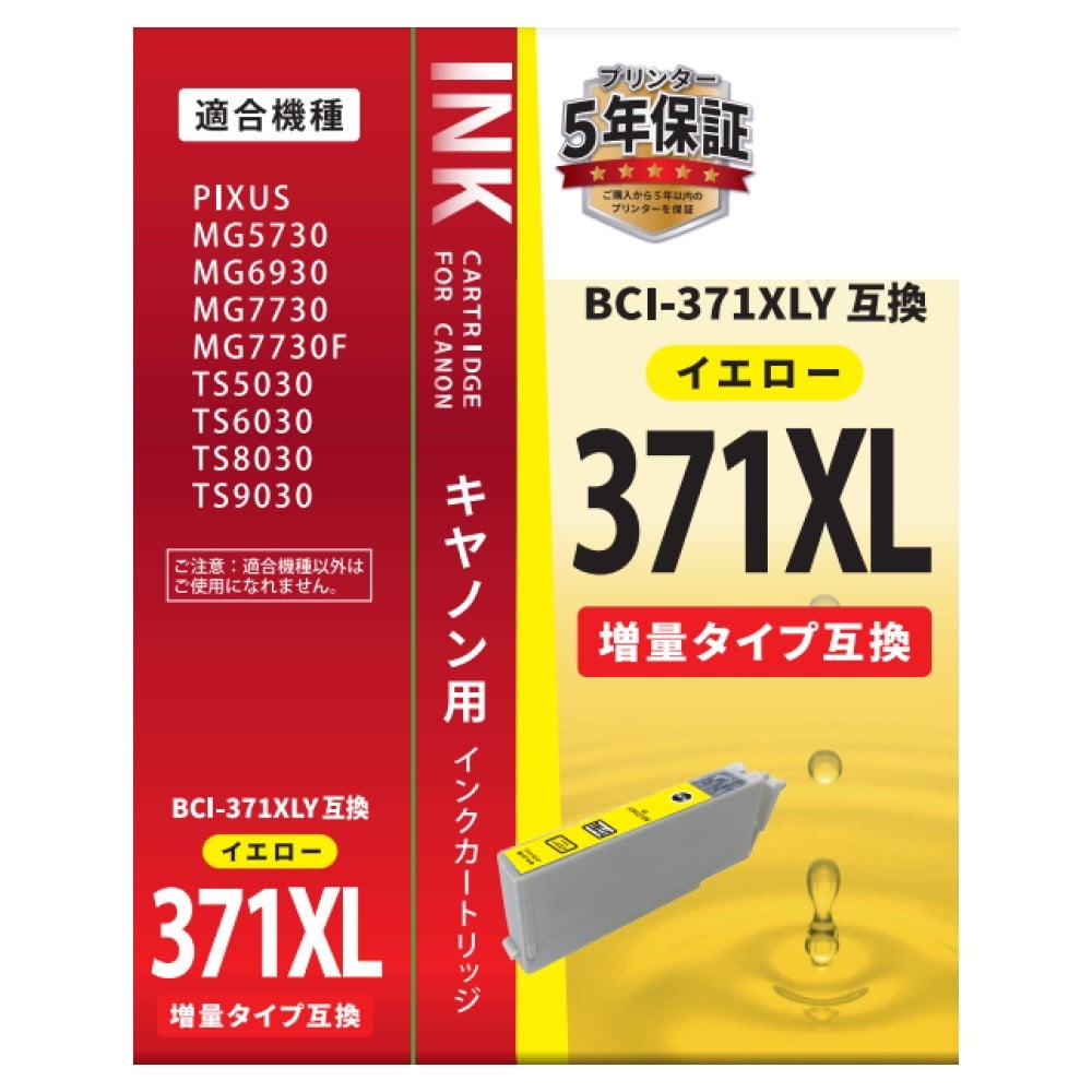キヤノン、純正インクカートリッジ、BCI-371XLY、増量タイプ、染料イエロー、互換インクカートリッジ、1個入り、プリンター5年間保証対象品