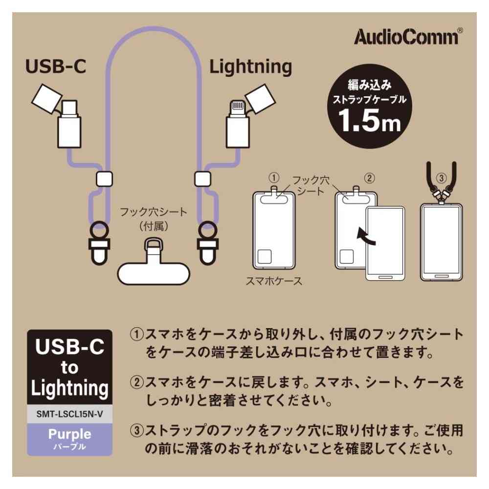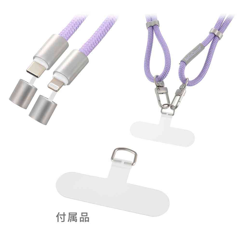 ● USB端子付きだから充電ケーブルとしても使えます ● 編み込みストラップケーブル ● USB-C to USB-C ● カラーはパープル