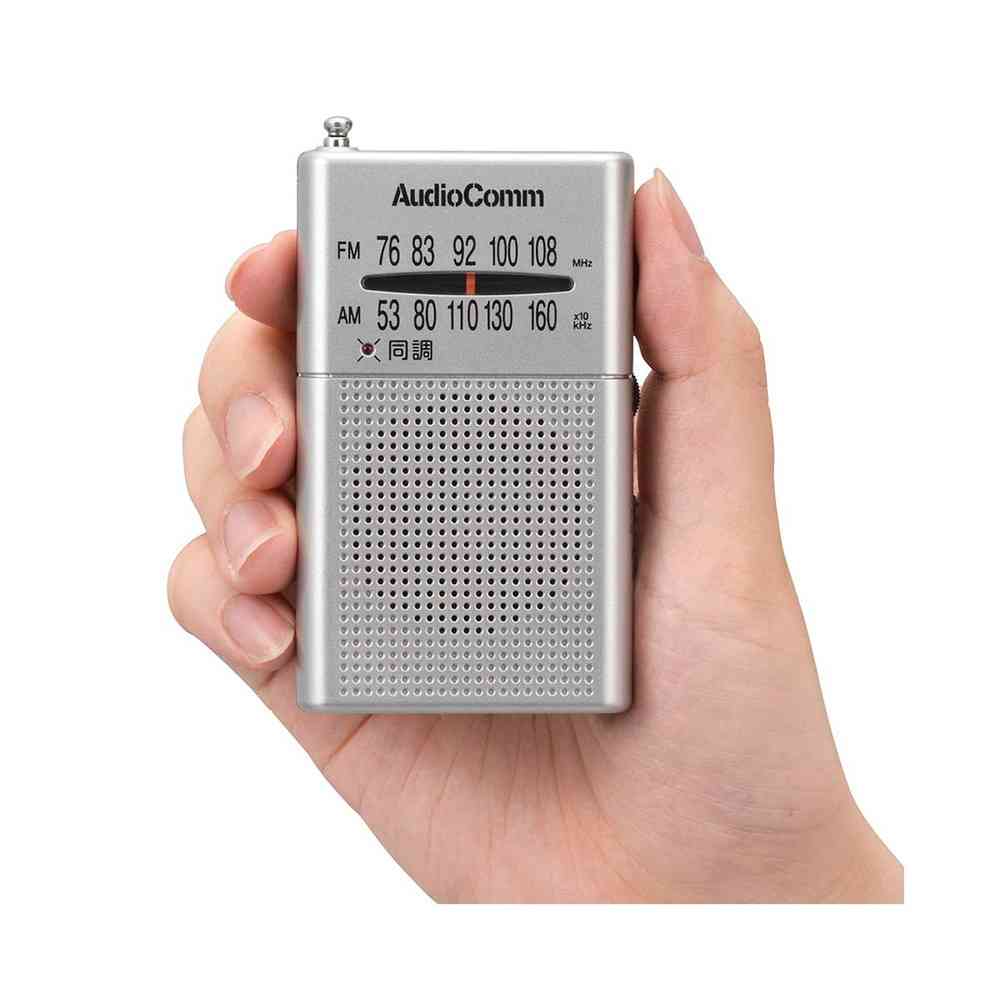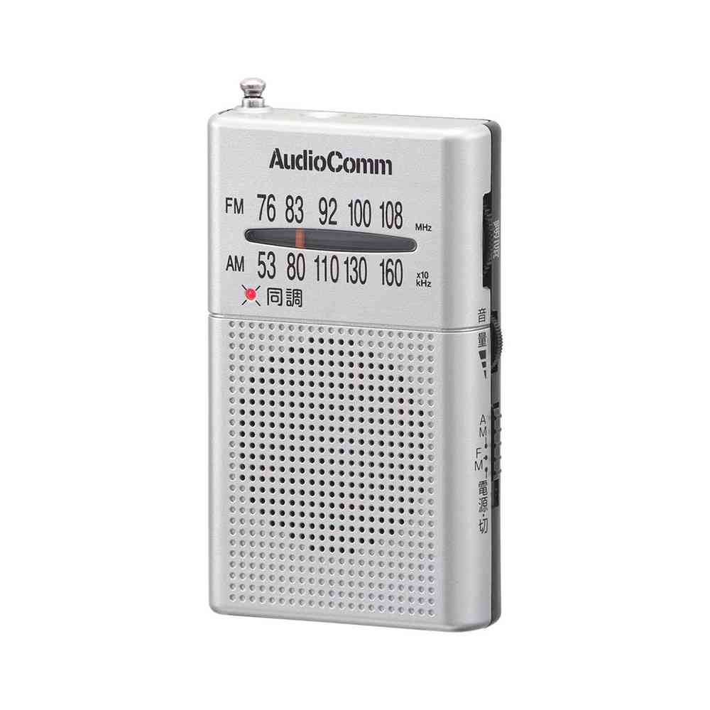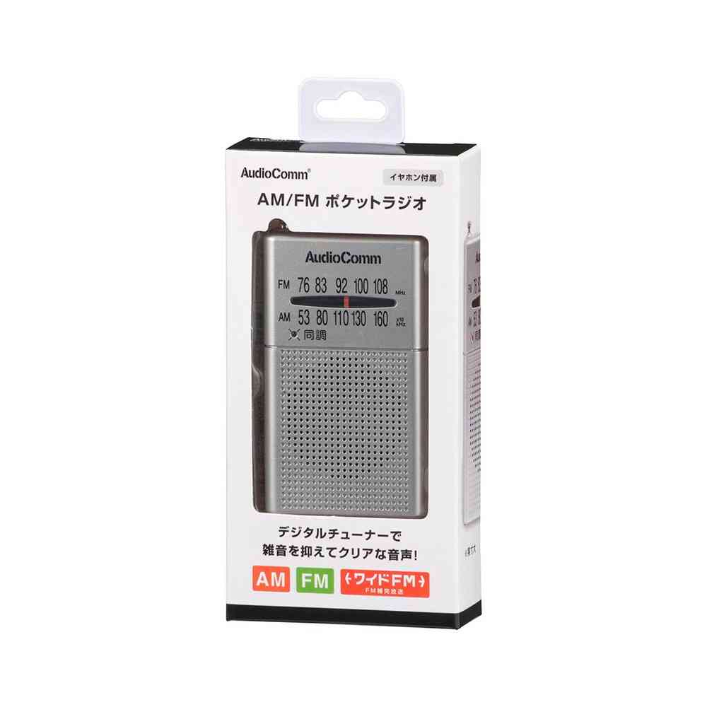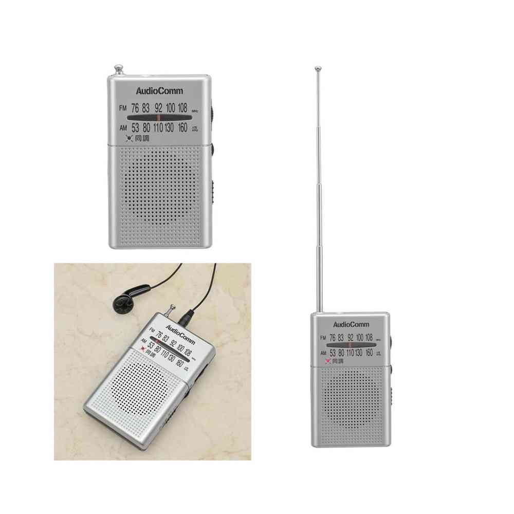 ラジオ、ポケットラジオ、デジタルチューナー、FMロッドアンテナ、AM対応、FM対応、ワイドFM対応、FM補完放送、同調ランプ、FMロッドアンテナ、モノラル受信、イヤホン付属、シルバー