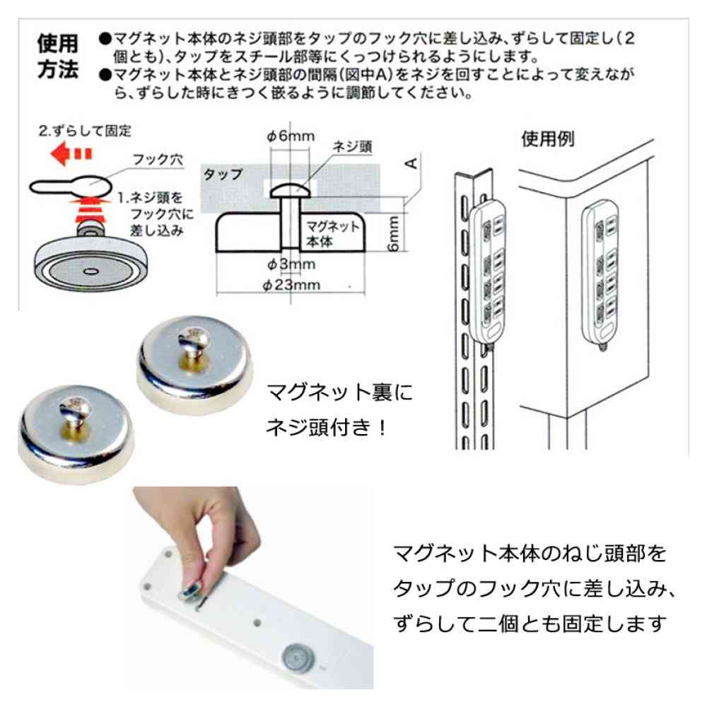 ● フック穴付き汎用タップに取り付ける磁石です。 ● フック穴にはめ込むだけの簡単取り付け