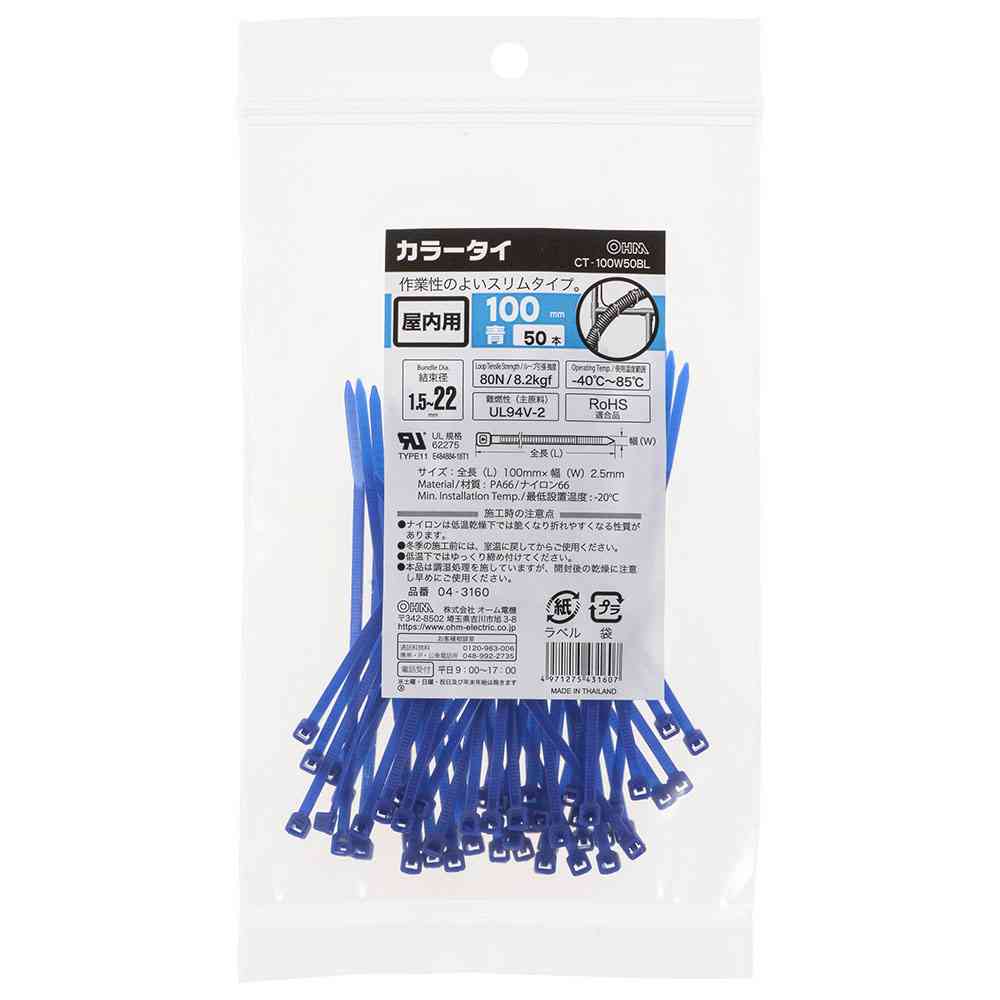 サイズ:全長100mm×幅2.5mm 結束径:1.5~22mm