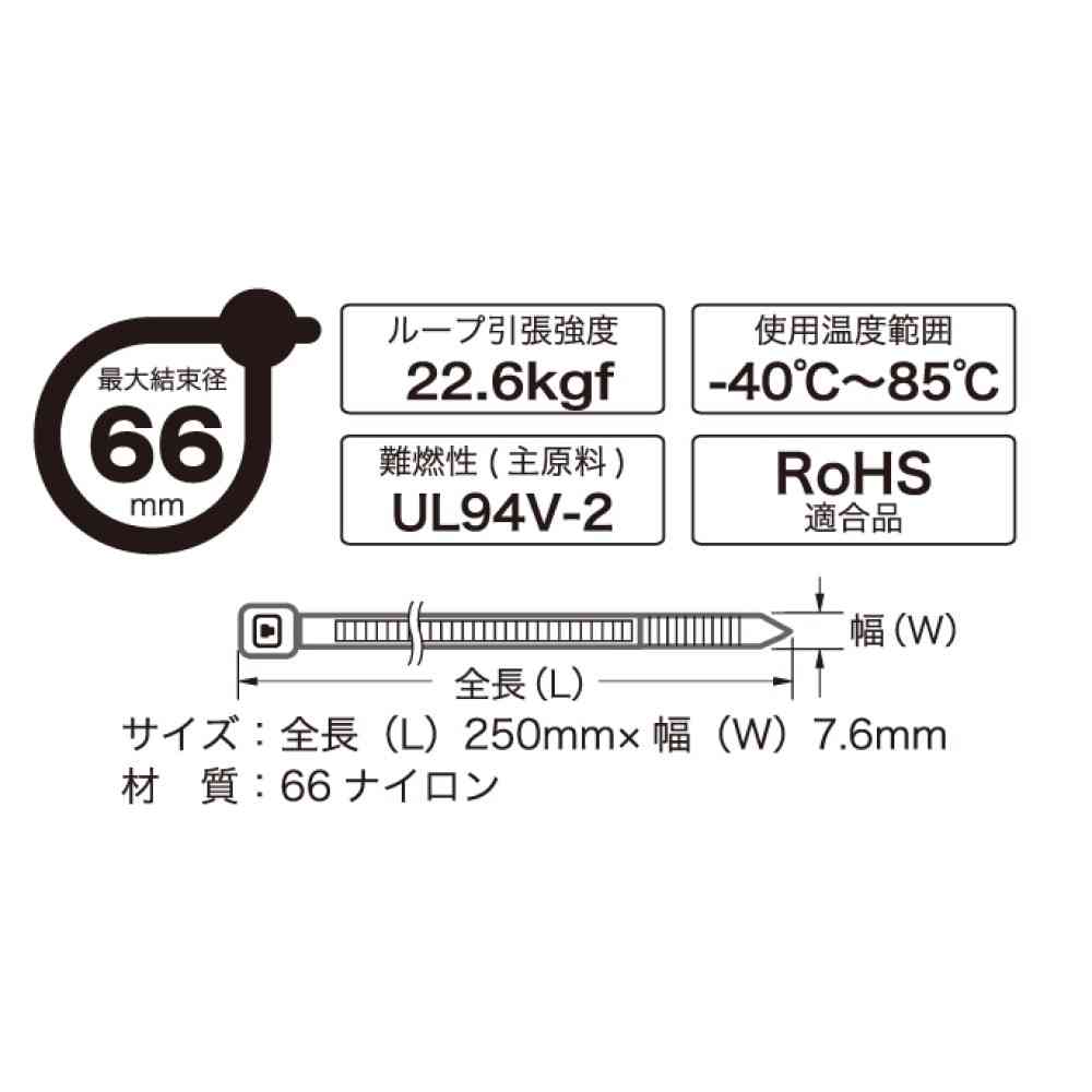 サイズ:全長250mm×幅7.6mm 最大結束径:66mm