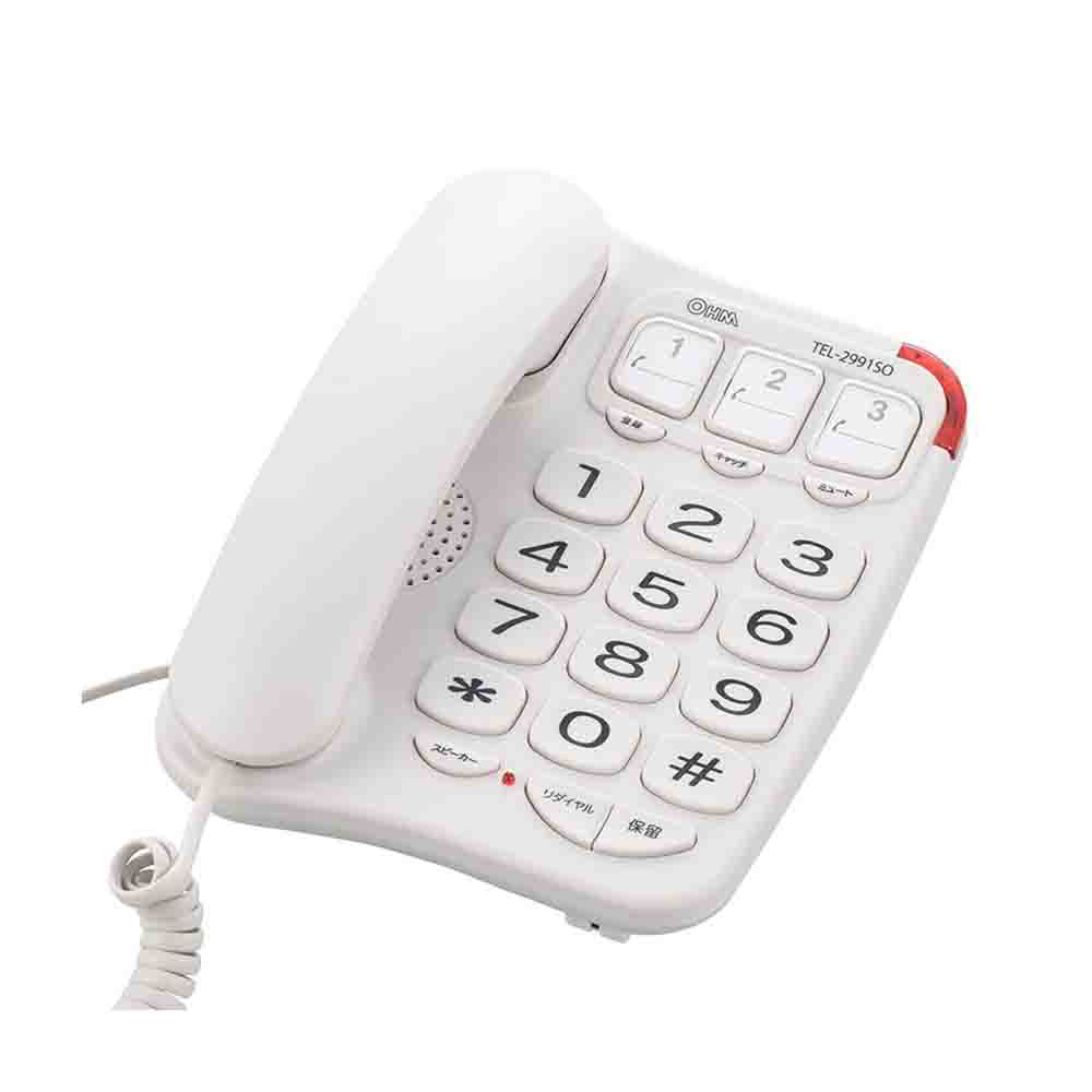 電話機、シンプル、シニア、大きなボタン、楽々番号入力、通話中、保留中に点灯、お知らせランプ、ワンタッチで発信、ワンタッチダイヤル、技術基準適合認証品、ホワイト