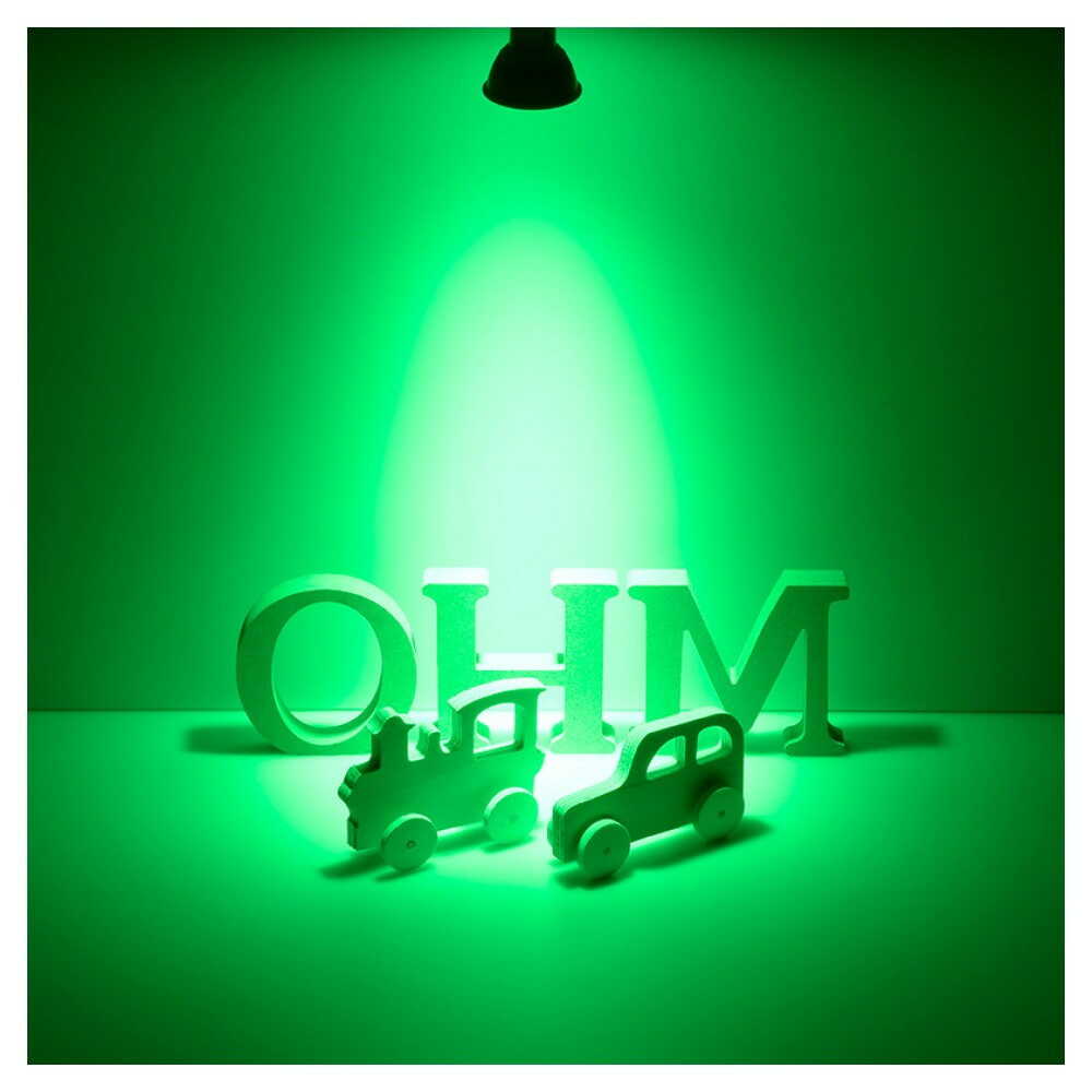 ハロゲンランプ形LED電球、配光角20°、中角タイプ、調光器対応、緑色、口金E11