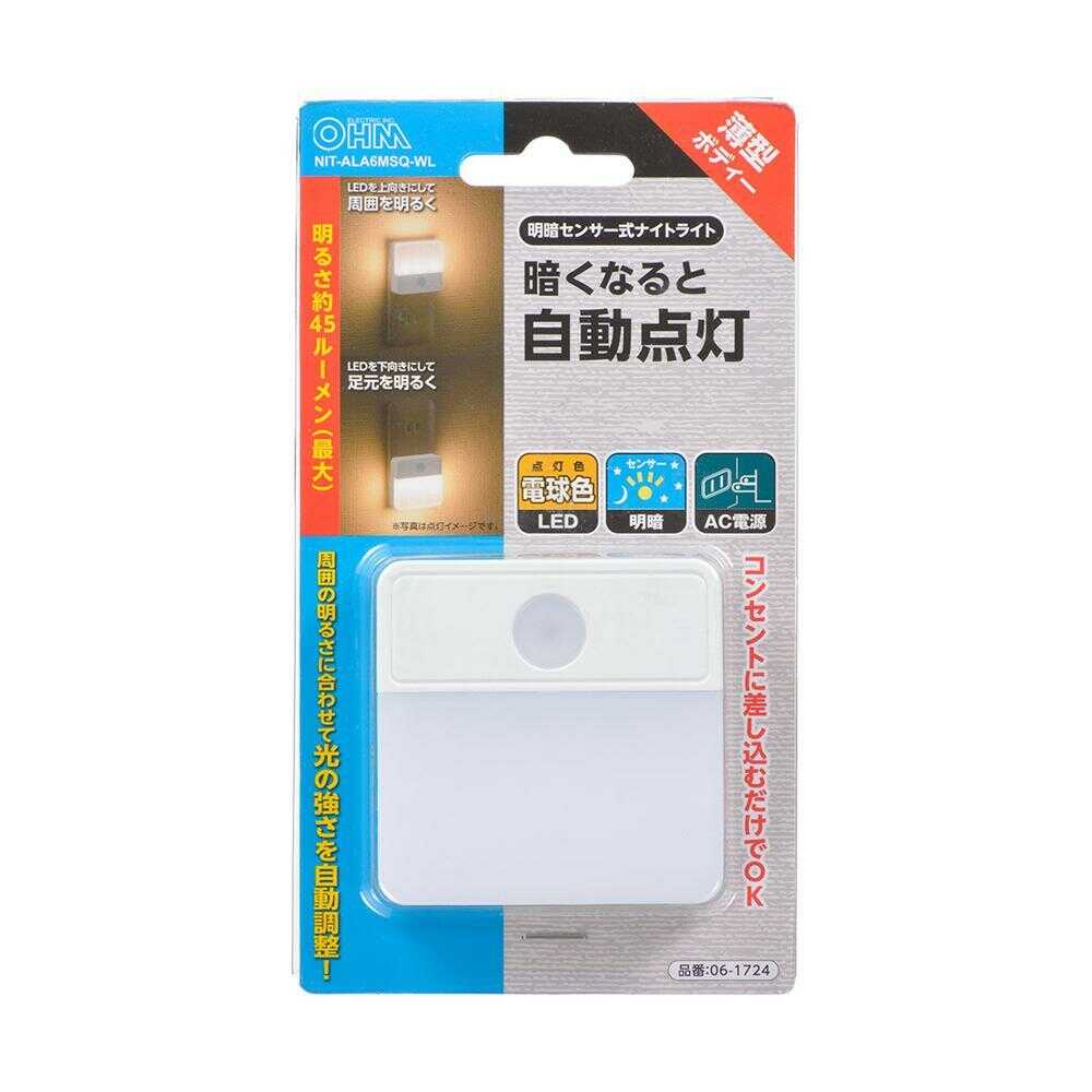 照明 ナイトライト LED フットライト 明暗センサー式 電球色 自動点灯 自動消灯 調光 簡単設置 耐トラッキングPSE 長寿命 省電力 薄型ボディー