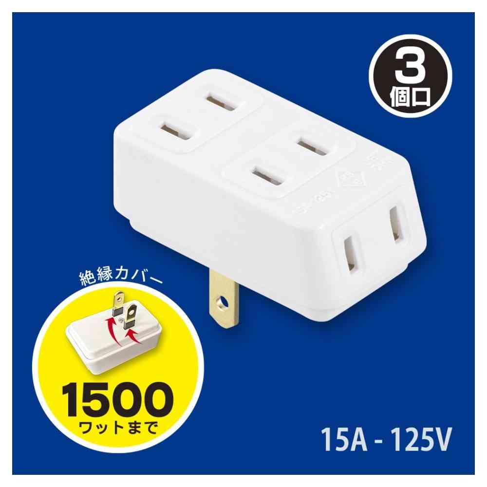 ● 1つのコンセントを3分配 ● 絶縁カバー付きプラグ