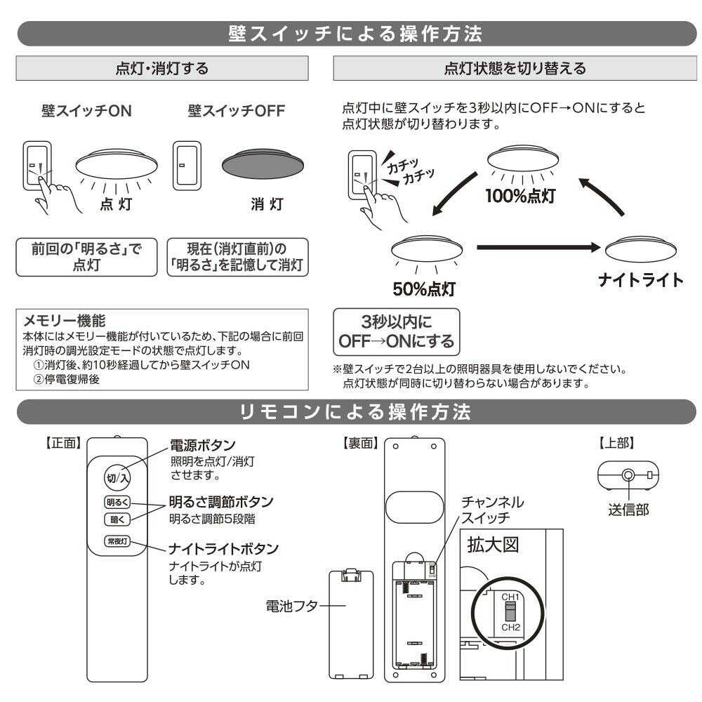 ● 直径45cmのシーリングライト ● 寝室・リビングルーム・ワンルームなどに ● リモコンで6段階に明るさ調節 ● 壁スイッチで3段階に明るさ調節 ● 取り付け簡単 ● 明るさ最大3100ルーメン ● 適用畳数は~6畳 ● 光源色は昼光色 ● LED5年保証対象商品