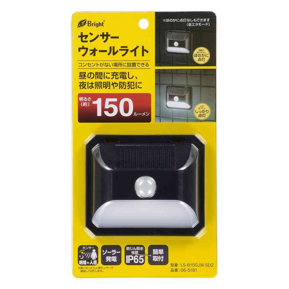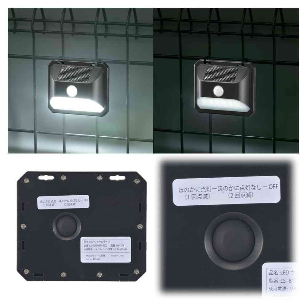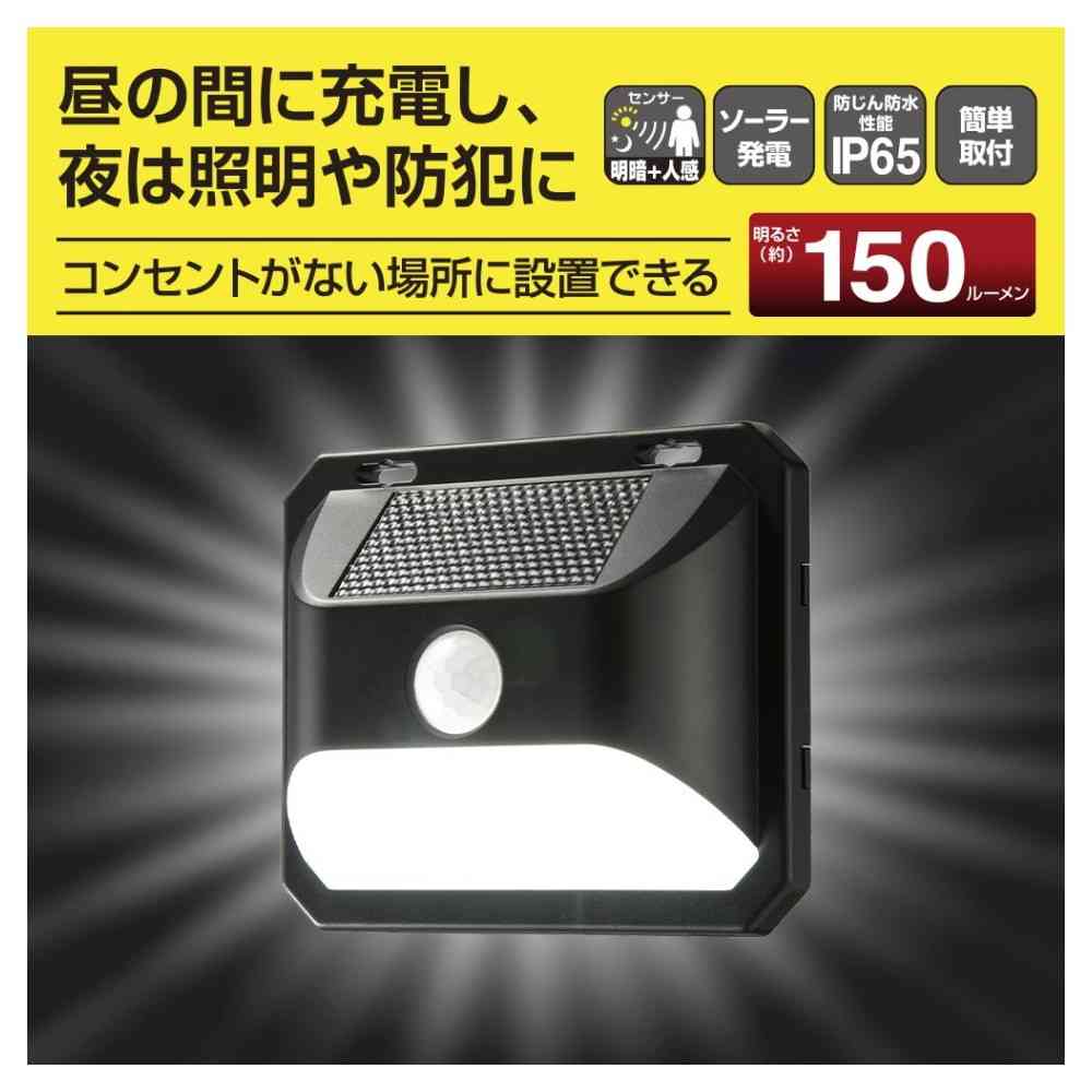 ● コンセントがない場所に設置できるソーラー発電式 ● 昼の間に充電、暗くなったら人感センサーで検知して点灯 ● 明るさ(約)150ルーメン ● 選べる2つのモード ・ 周囲が暗くなるとほのかに点灯、動きを検知するとしっかり点灯モード(通常モード) ・ 周囲が暗くなっても点灯せず、動きを検知した時だけしっかり点灯モード(省エネモード) ● IP65の防じん防水性能