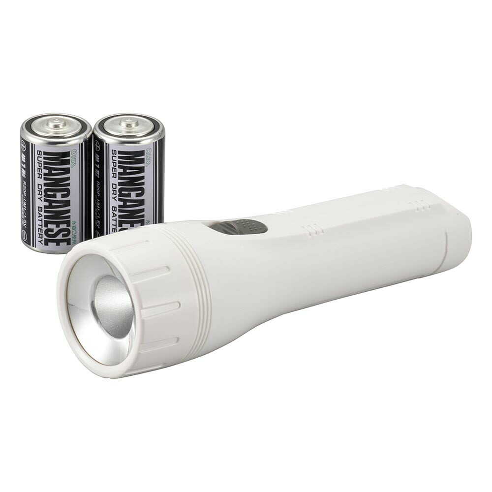 ●単1形乾電池仕様で長持ち ●明るさ7倍の約72ルーメン(当社従来品比) ●連続使用時間約150時間(アルカリ乾電池使用時) ●常備用、レジャー、車載用などに ●単1形乾電池2本付属