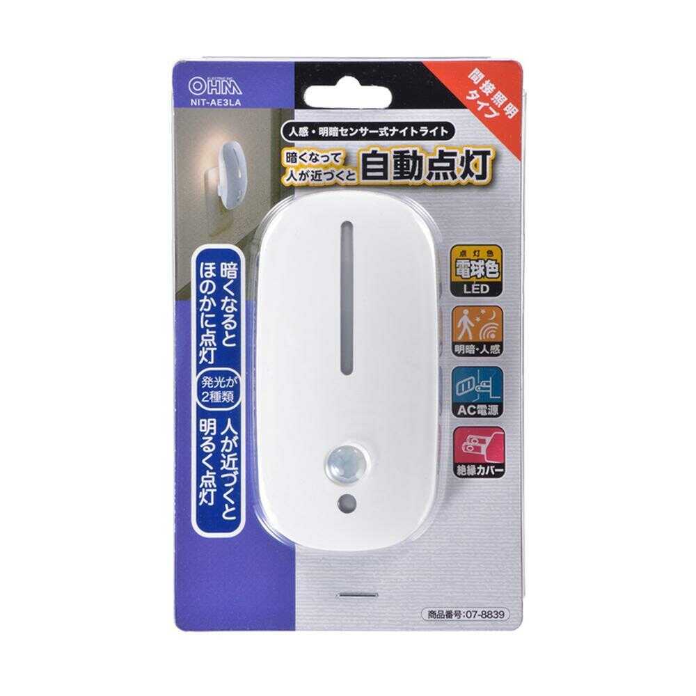 照明 ナイトライト LED フットライト 明暗センサー式 人感センサー式 電球色 間接照明 簡単設置 長寿命 省電力 絶縁カバー付プラグ トラッキング火災を予防
