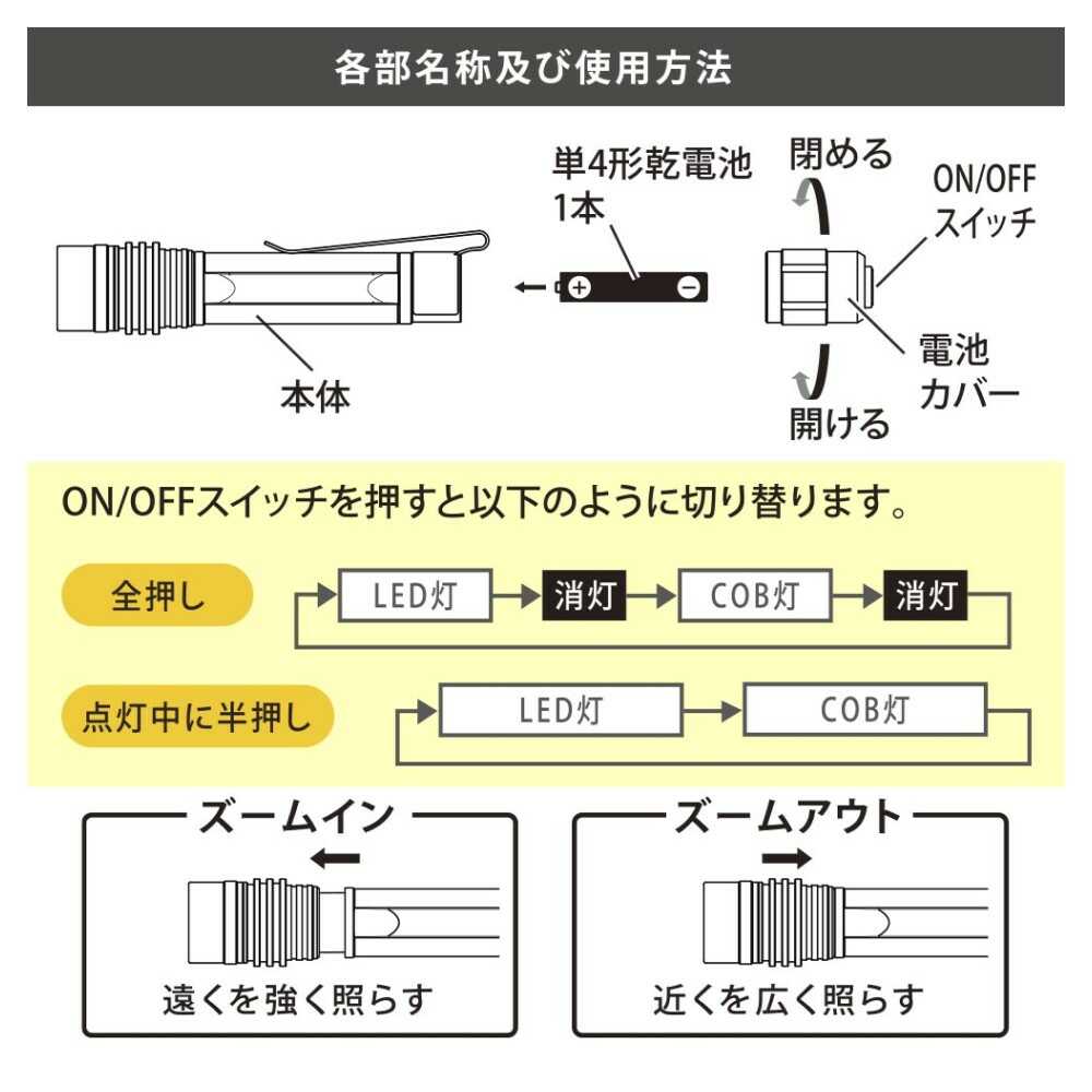 COB&LED、2WAY、ペンライト、ZOOM付き