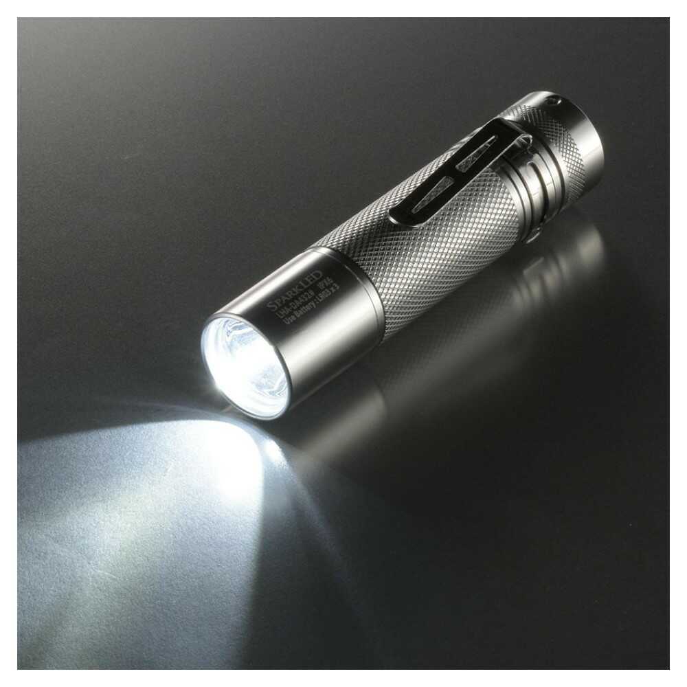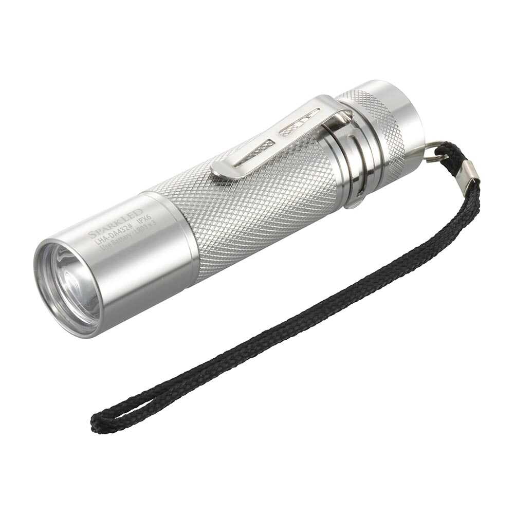 2調光モード、400ルーメン、アルミボディ、携帯用ストラップ、携帯クリップ付き、保護等級IPX6