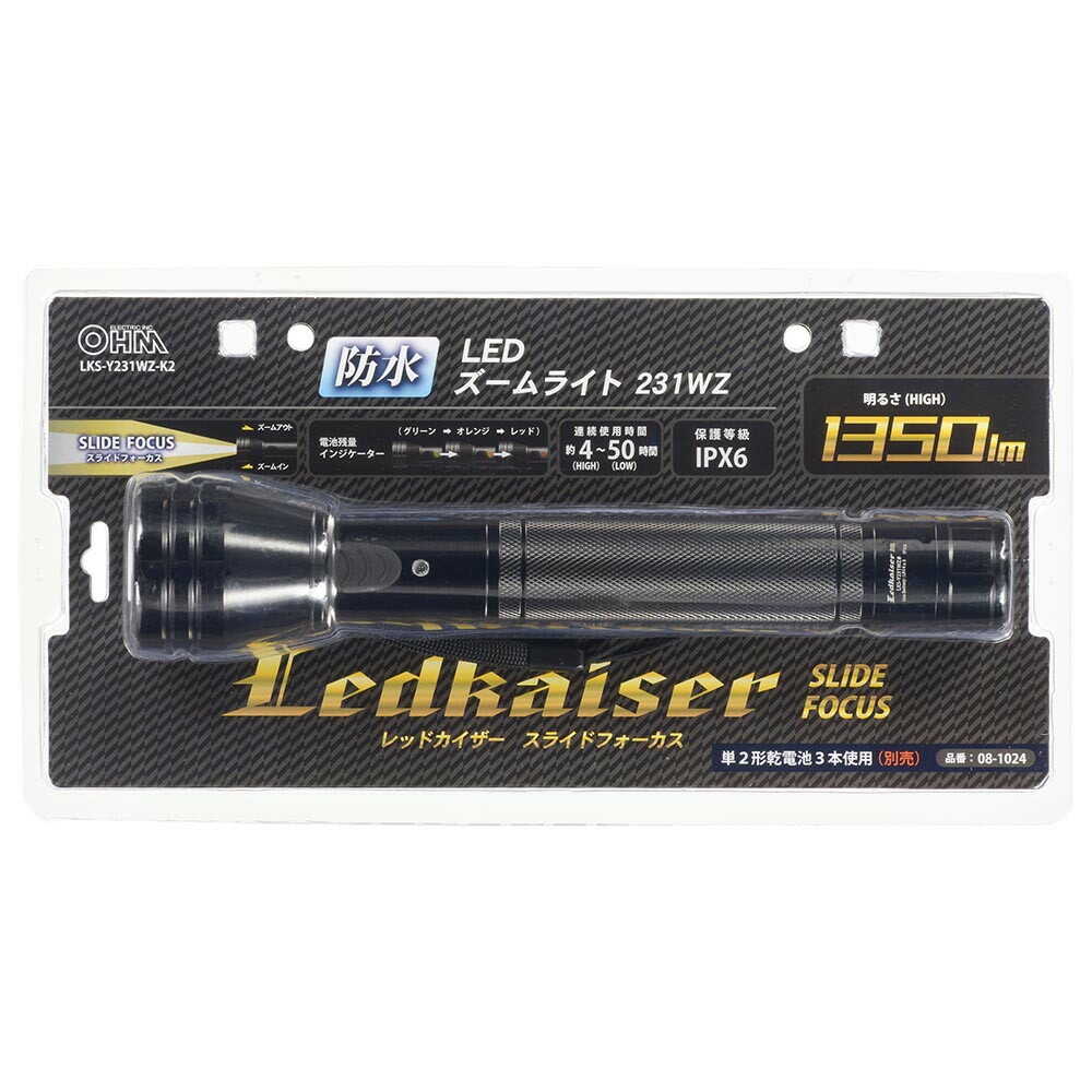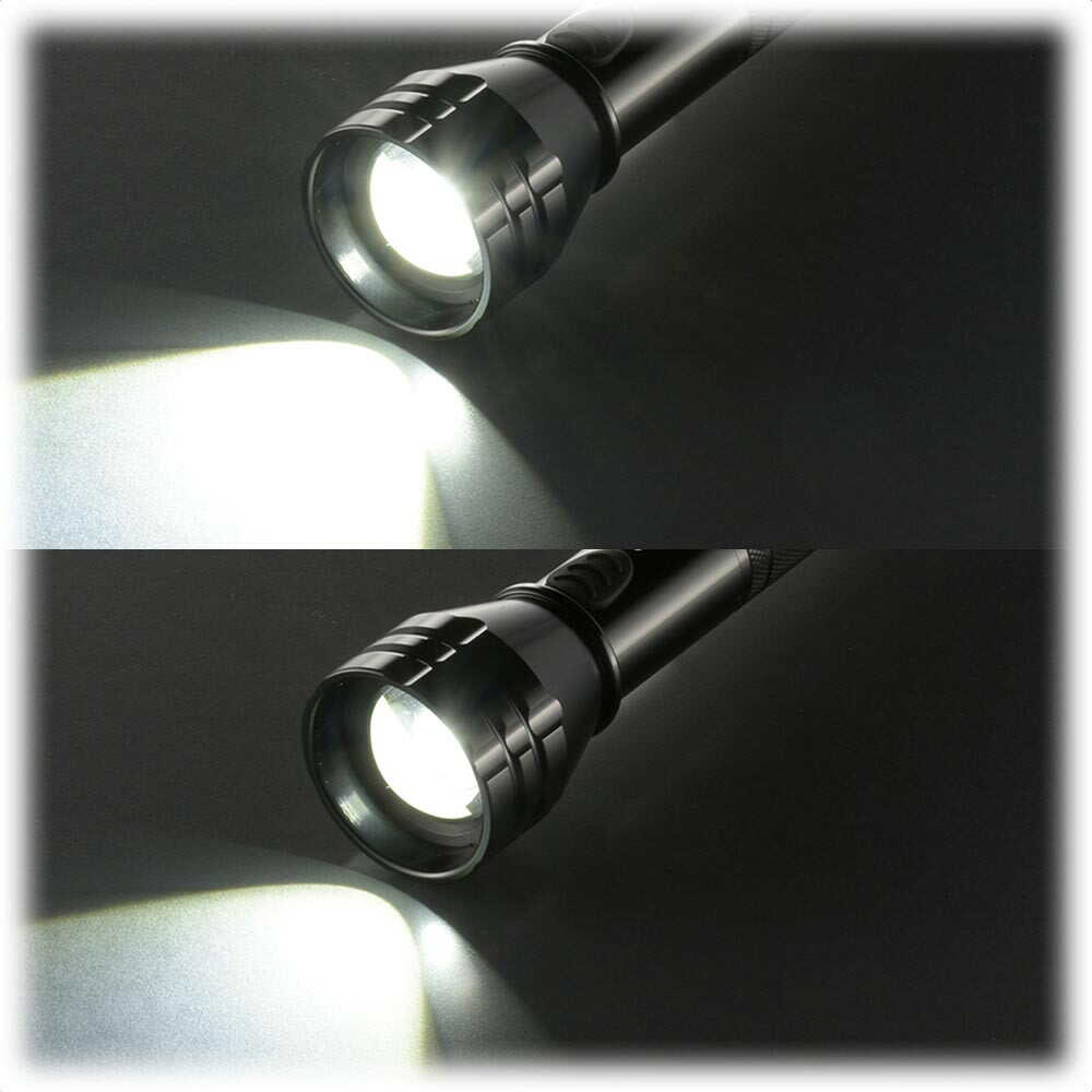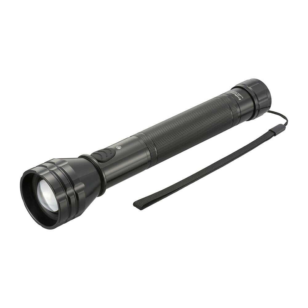 スライドフォーカス機能付き、調光機能2モード、保護等級IPX6、耐水形、1350ルーメン、10400カンデラ、電池残量インジケーター付き、携帯ストラップ付