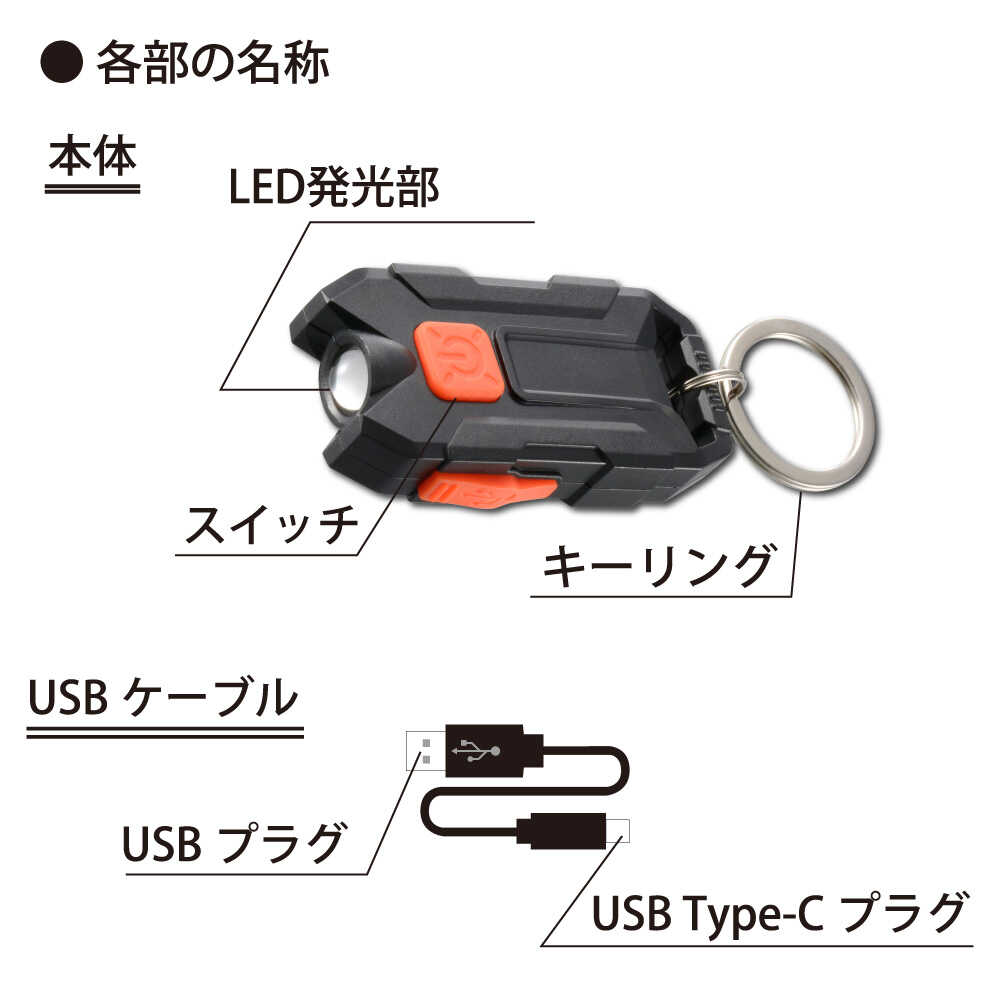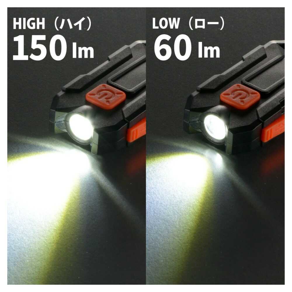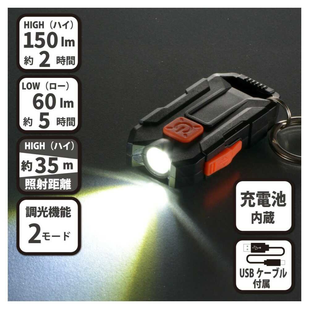 点灯モード、充電インジケーター付き、最大150ルーメン、調光機能、2モード、充電池内蔵、USBケーブル付属