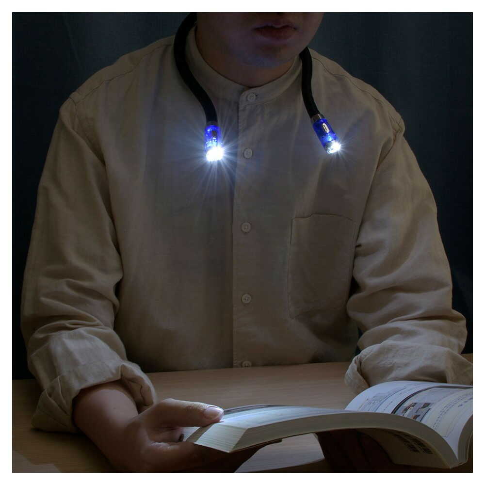 首に掛けて使える、LEDネックライト、首への負担が少ない、軽量設計、フレキシブルアーム、自由自在に角度調整、左右個別に明るさを変更