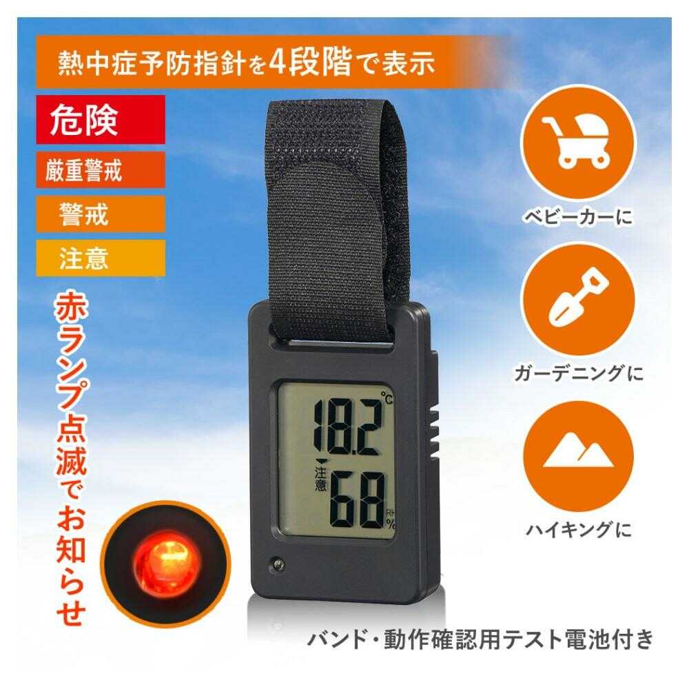 熱中症予防、4段階表示、赤ランプ、点滅でお知らせ、バンド、テスト電池、ベビーカー、ガーデニング、ハイキング