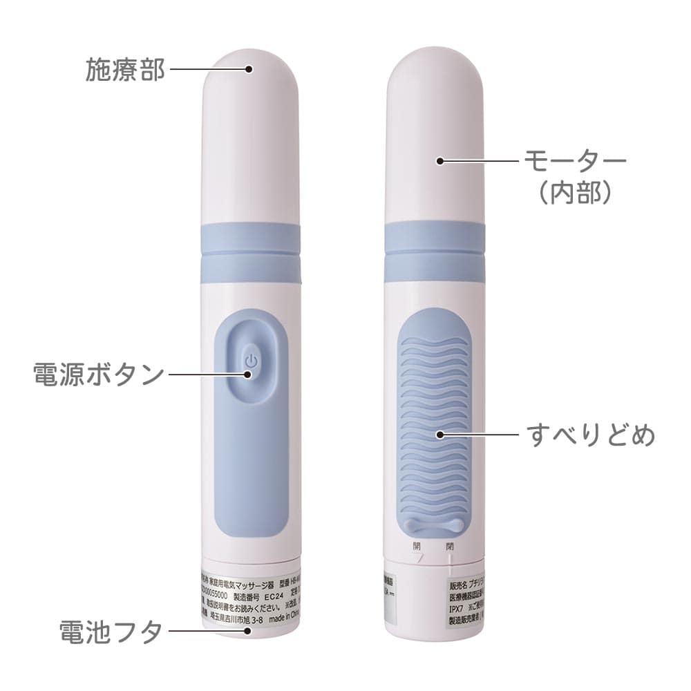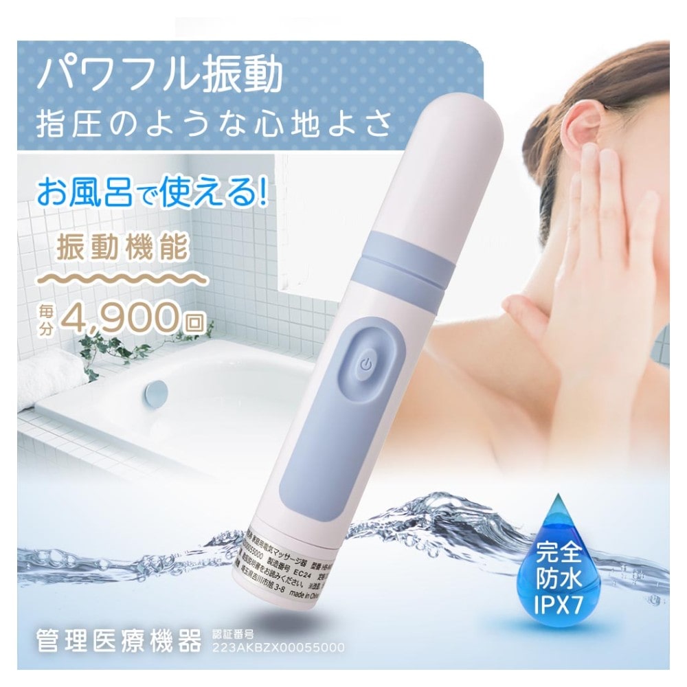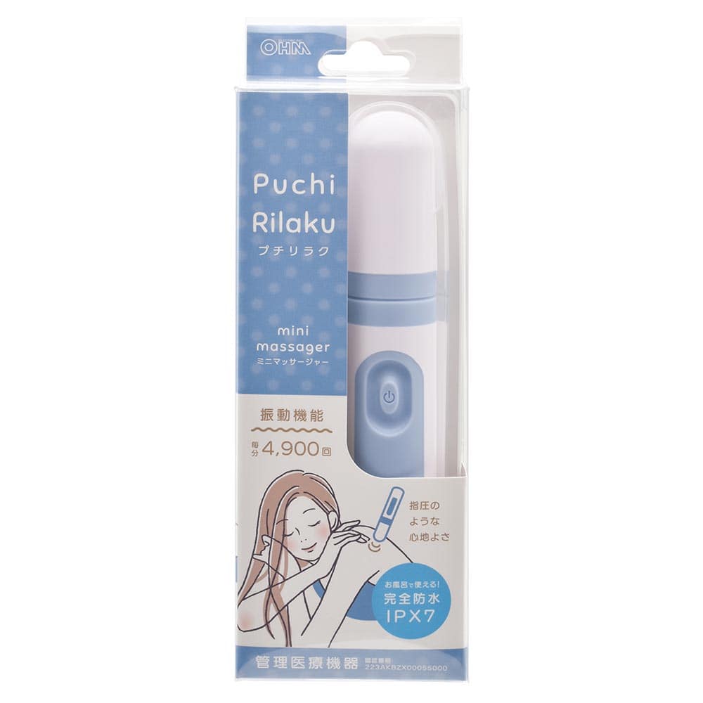 ミニマッサージャー、PuchiRilaku、プチリラク、振動機能、毎分4900回、指圧のような心地よさ、お風呂でも使える完全防水、IPX7、カラー、ブルー