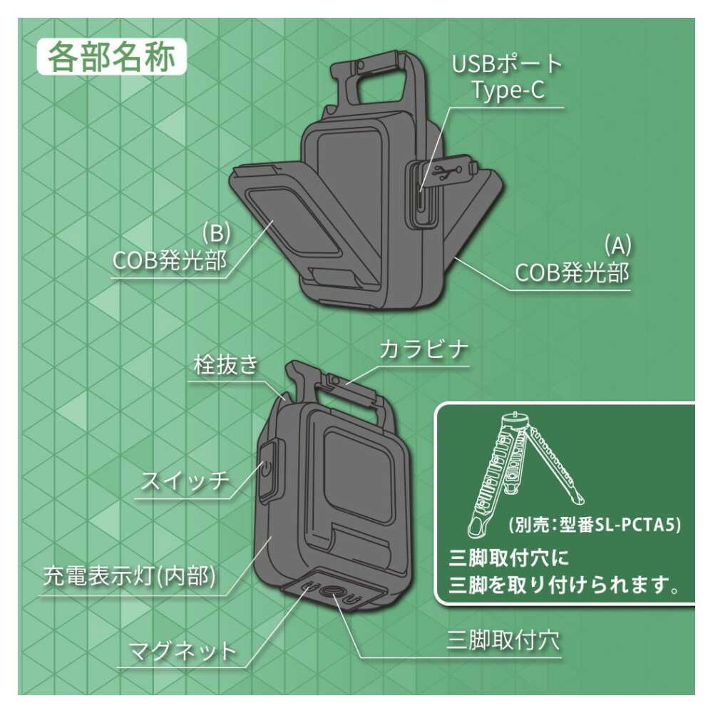 ●2つの発光部で強い明るさ ●両サイドを開いてカラビナで吊り下げると広範囲を照らせる ●無段階に明るさ調整が可能 ●栓抜き・マグネット・三脚・カラビナなど色々なツールが使える ●USB充電式(Type-Cポート搭載)