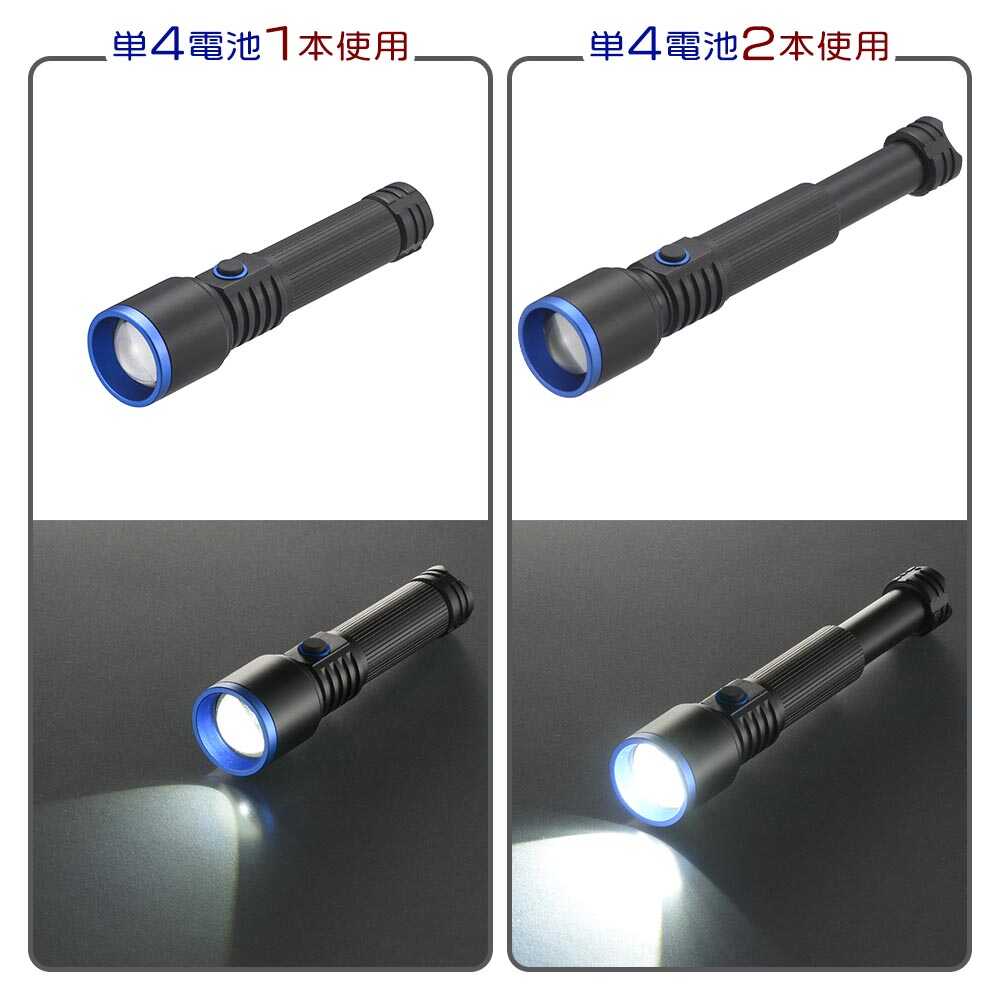 ※ 乾電池1本で使用する場合、必ず伸び縮み部を縮め、乾電池サイズに合わせてご使用ください。本体を伸ばした状態のまま乾電池1本で使用した場合、ライトは点灯しません。