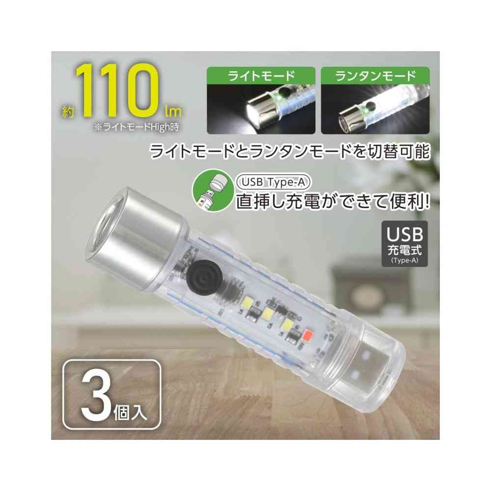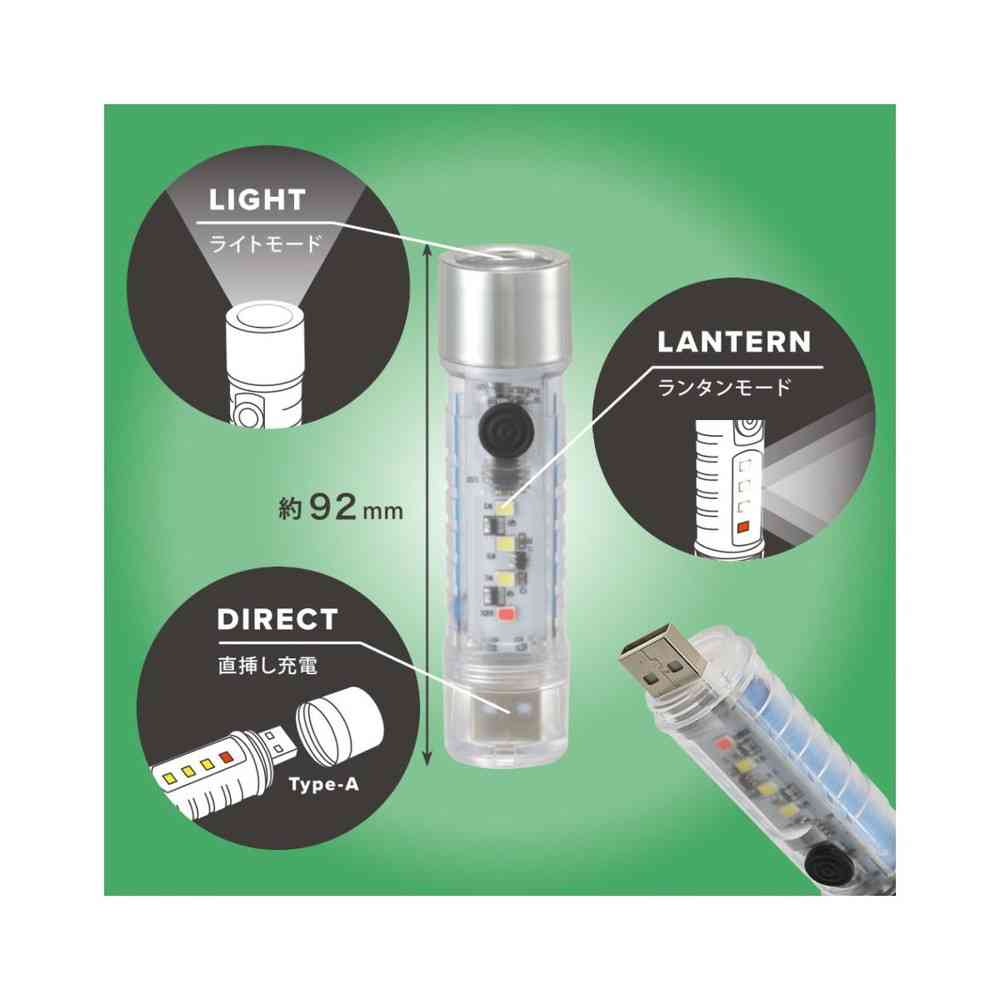 ● 充電式なので繰り返し使用可能 ● ライトモードとランタンモードで合計6種の点灯モードに切り替え可能 ● USBに直接挿し込むので充電ケーブルがいらない