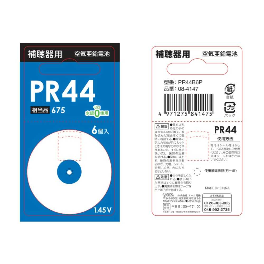 ● 補聴器用空気電池 ● PR44 ● 相当品675 ● 水銀ゼロ使用 ● 使用推奨期限:3年