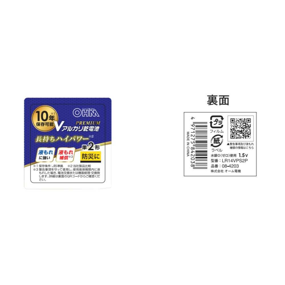 ● 水銀0(ゼロ)使用 ● 10年保存可能(保存条件:JIS準拠) ● 長持ちハイパワー ● 液もれに強い ● 液もれ補償 ● 公称電圧:1.5V ● 単2形 ● 2本パック ● グリーン購入法適合商品