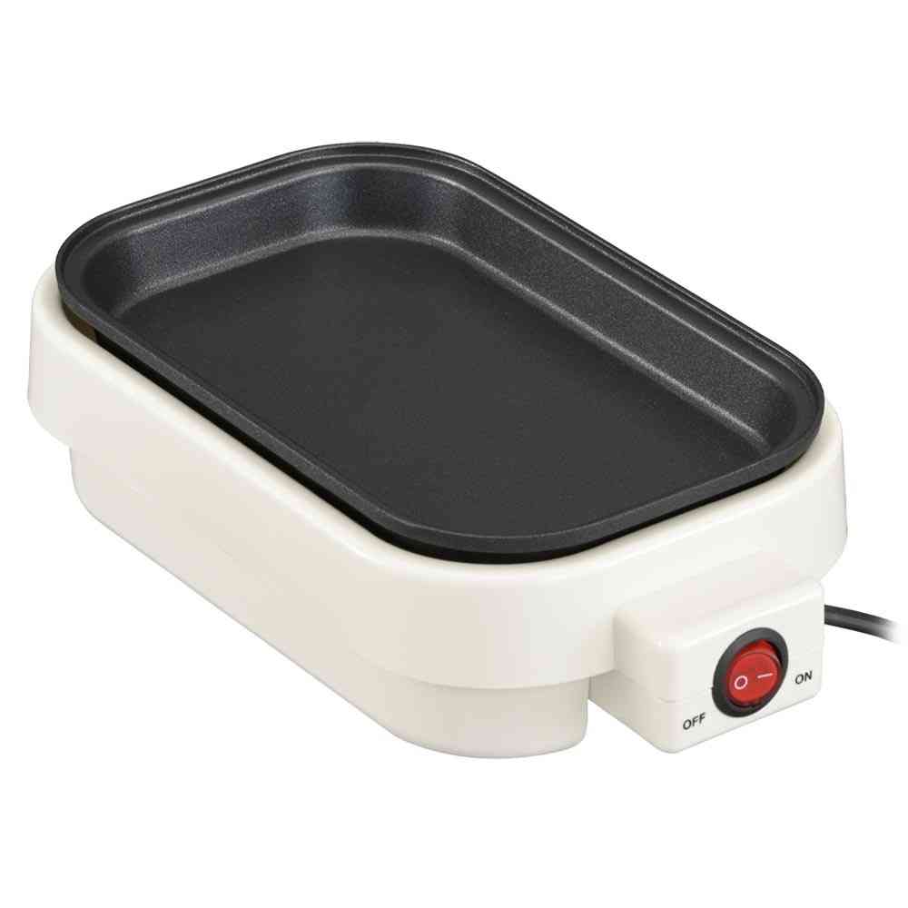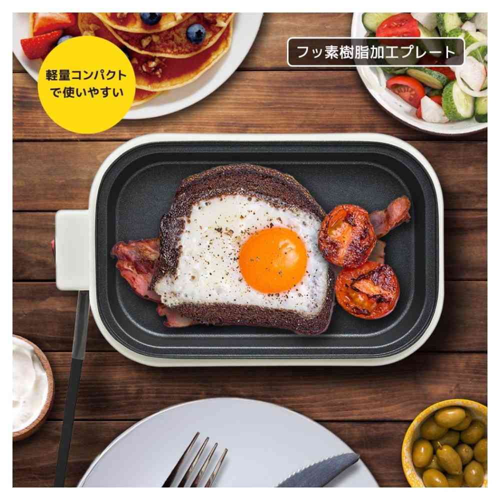 スイッチを押すだけで簡単に調理、フッ素樹脂プレート、お手入れ簡単、軽量コンパクト、使いやすい