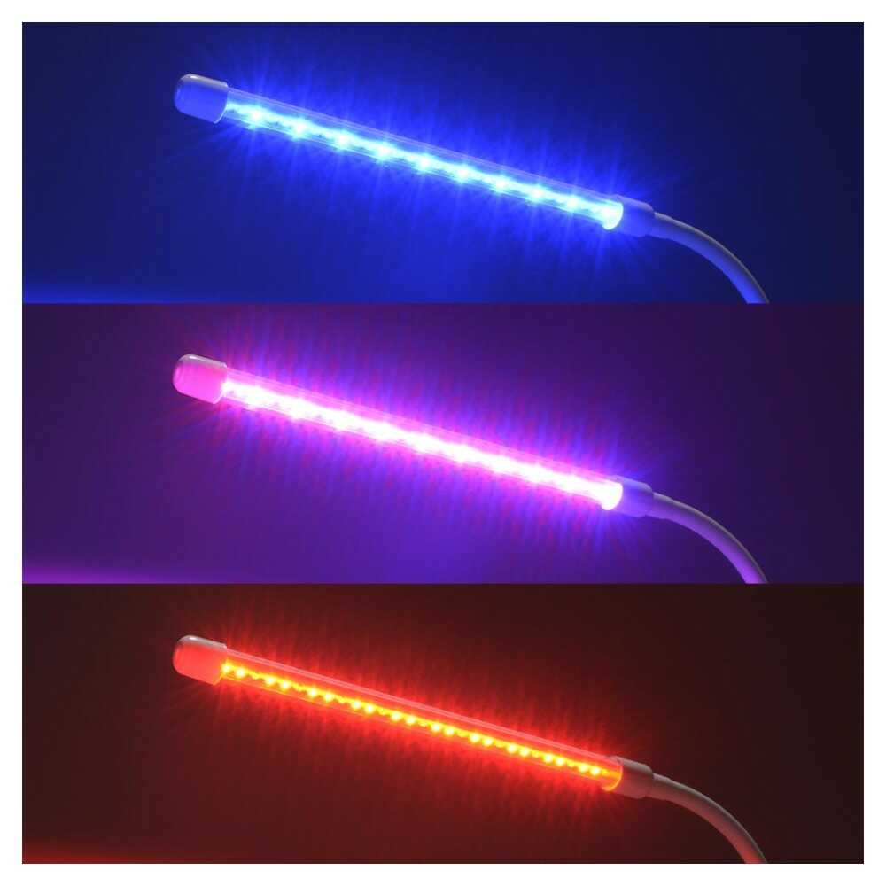 室内で太陽光の補完、植物育成ライト、赤色、青色、調色機能付き、10段階調光機能付き、3段階タイマー機能付き、3時間、9時間、12時間、フレキシブルアーム、セード調整が自由自在、USB電源式、USBアダプター別売