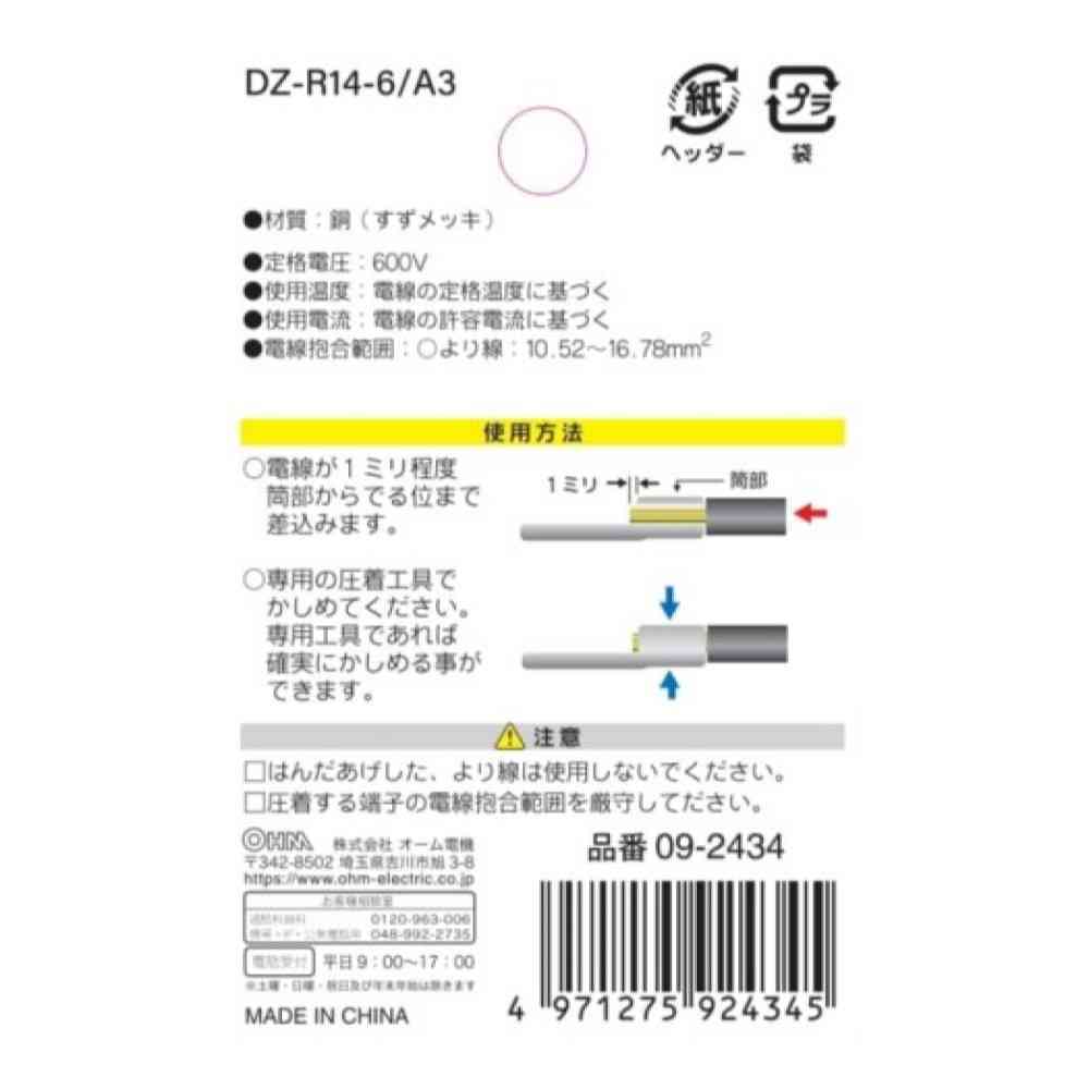 ● 電線接続用 ● 専用圧着工具で電線をかしめてください ● 確実に接続するR型です