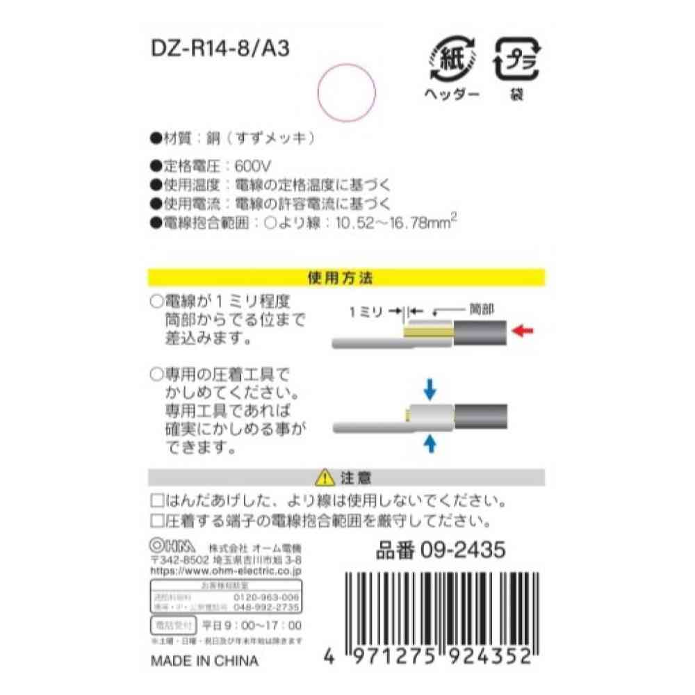 ● 電線接続用 ● 専用圧着工具で電線をかしめてください ● 確実に接続するR型です