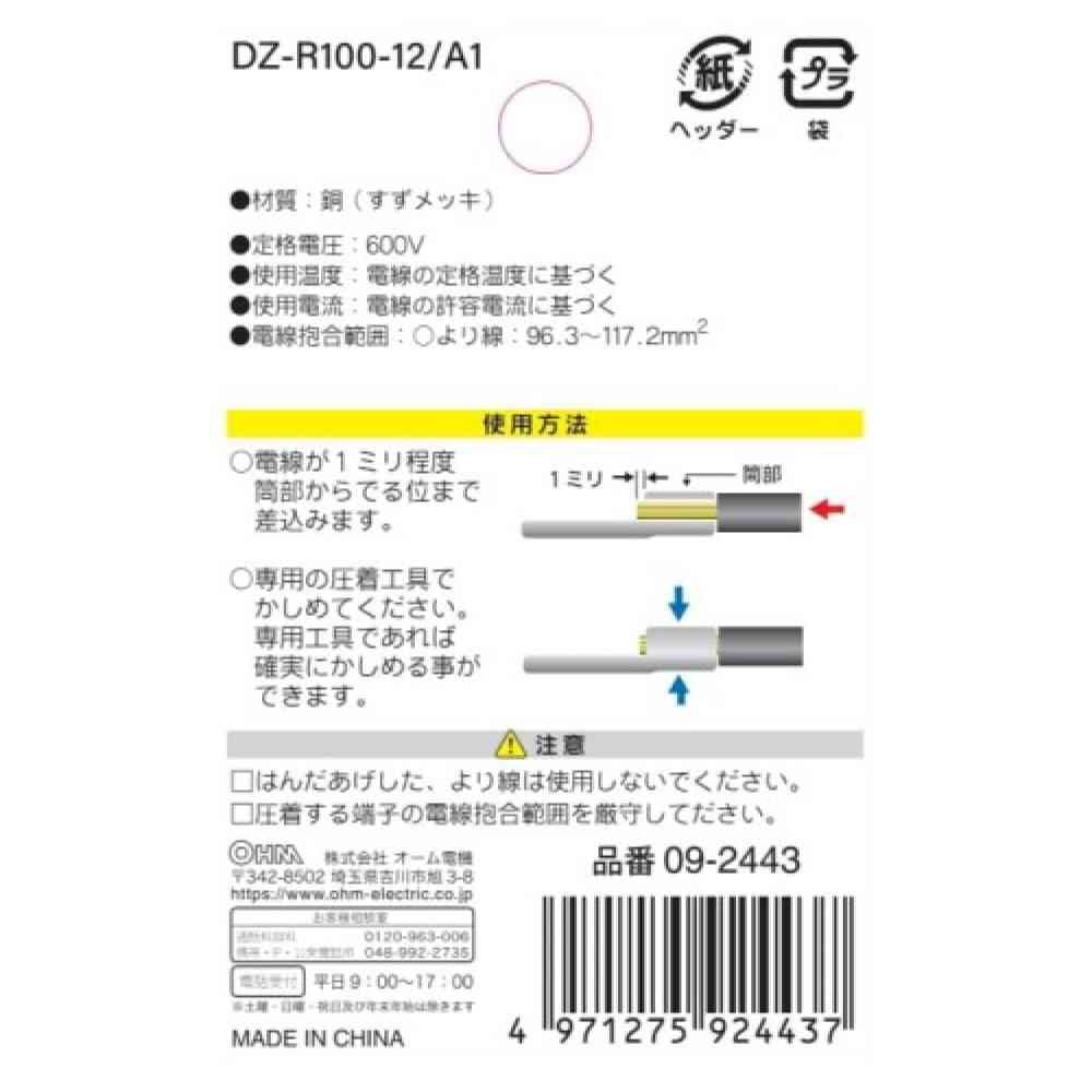 ● 電線接続用 ● 専用圧着工具で電線をかしめてください ● 確実に接続するR型です