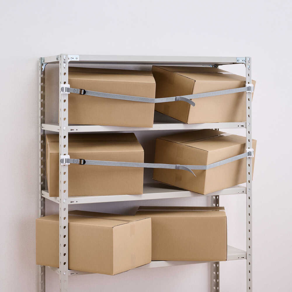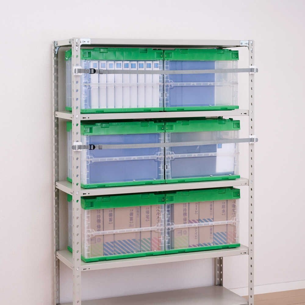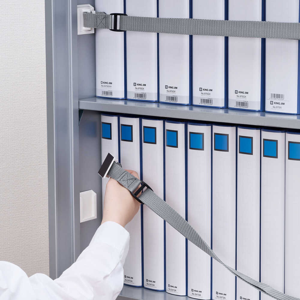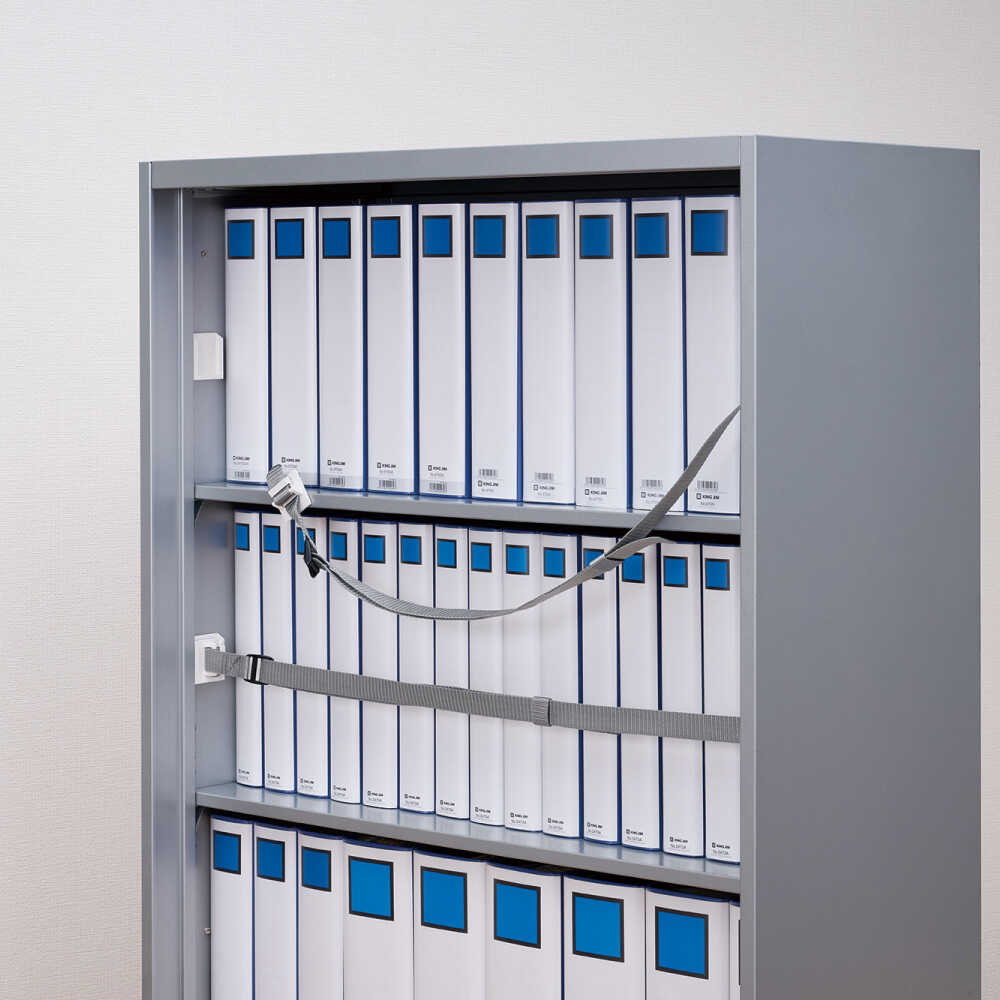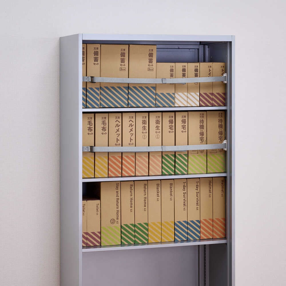 収納棚に取り付けることで地震発生時の収納物落下を防止します。