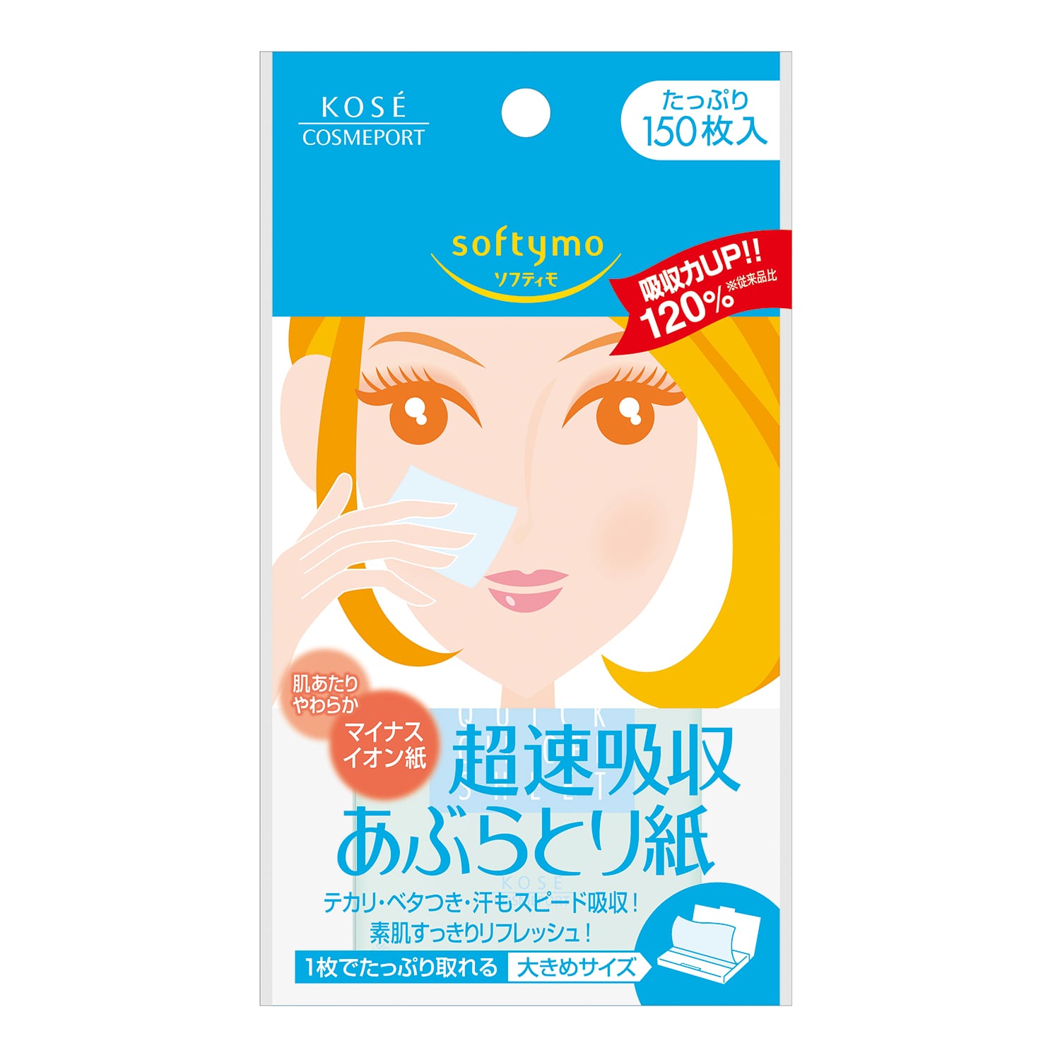マイナスイオン紙使用のあぶらとりシート。 心地良い使用感で素肌をリフレッシュ。 小鼻のわきなどの細かな部分にもぴったりフィットし、1枚であぶらも汗もスピード吸収。