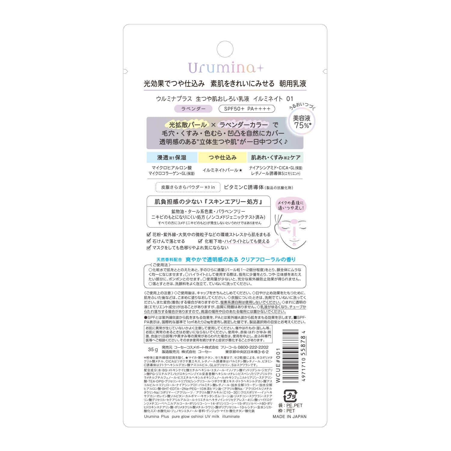 ●たっぷりの光拡散パール効果でつや仕込みできるおしろい乳液。 ●みずみずしいタッチで毛穴、くすみ、色むら、凹凸を自然にカバーして、透明感が一日中つづきます。 ●爽やかなクリアフローアラルの香り。
