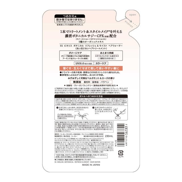 1本でトリートメント&スタイルメイクを叶える、濃密ボタニカルサジーcpx.配合のヘアウォーター。 寝ぐせ・生えぐせまで直して扱いやすい髪に。 みずみずしく可憐なベルガモット&ローズの香り。 ◇お得なつめかえ用。
