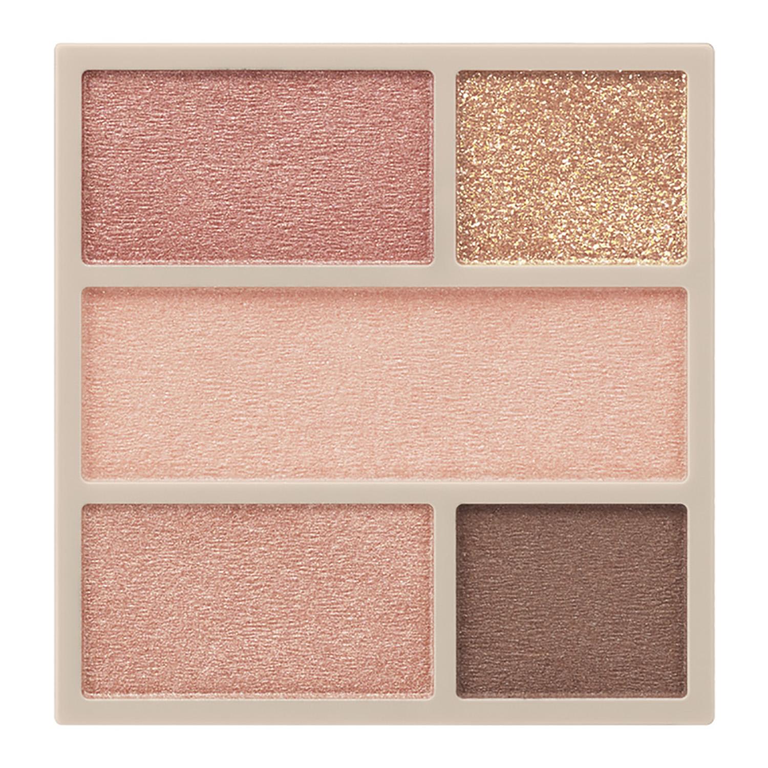 多質感の5色入りアイシャドウ。1つのパレットで (抜け感ツヤ) (奥行きマット) 2つの仕上がりを叶える二面性アイシャドウ。 【使用について】 効果的なご使用法 (抜け感ツヤ仕上げ) : A 上まぶた・下まぶた全体にのばします。B アイホールから下まぶたまでぼかします。C 目頭や涙袋など輝きをあたえたい部分にのせます。 (奥行きマット仕上げ) A 上まぶた・下まぶた全体にのばします。D アイホールから下まぶたまでぼかします。E 目のきわ・下まぶたの目じり側にライン状にぼかします。