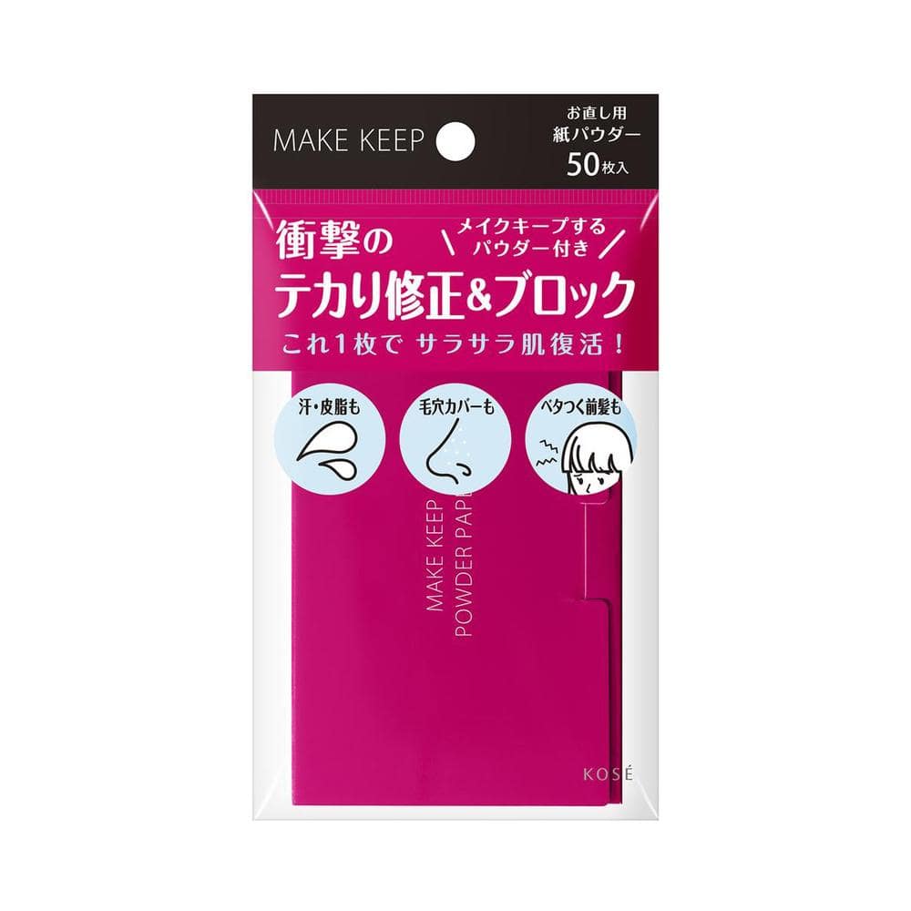 1枚でさっとテカりを修正! 持ち運びに最適な紙おしろいにメイクキープするパウダーを塗工。 余分な脂を吸収し、サラサラ肌キープ。