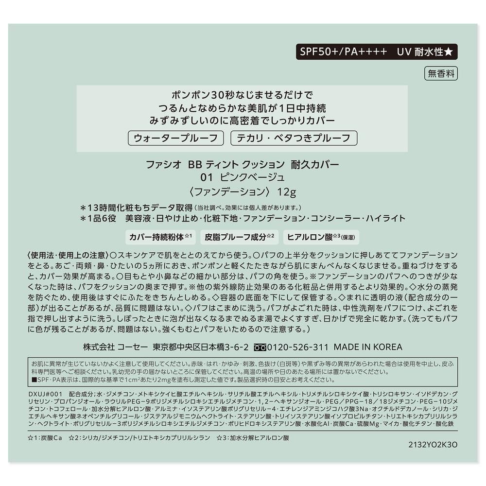 水分の蒸発を防ぐため、使用後はすぐにふたをきちんとしめる。 容器の底面を下にして保管する。 まれに透明の液(配合成分の一部)が出ることがあるが、品質に問題はない。 パフはこまめに洗う。 パフがよごれた時は、中性洗剤をパフにつけ、よごれを指で押し出すように洗う。 しぼったときに泡が出なくなるまでぬるま湯でよくすすぎ、日かげで完全に乾かす。 洗ってもパフに色が残ることがあるが、問題はない。 強くもむとパフをいためるので注意する。