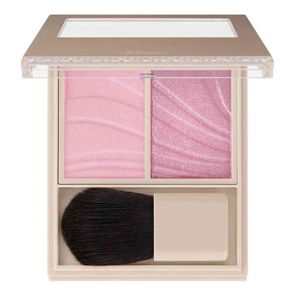 ベースで頬を整えて色を重ね、花びらのような血色感×立体ツヤを生み出す。 マットベースとパールカラーの2質感チークカラー。