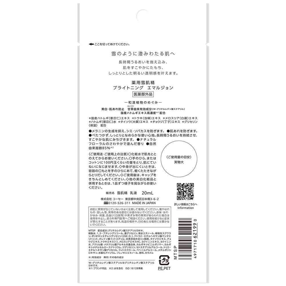 ![[医薬部外品] コーセー 薬用雪肌精 ブライトニング エマルジョン トライアル 20ml](/img/0170/goods/1/4971710621990_2.jpg)