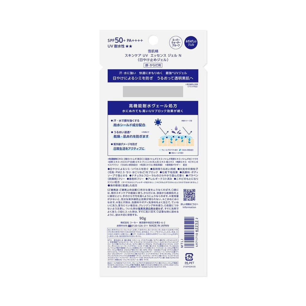 汗・水に強い 日やけによるシミを防ぎ、快適にまもりぬく、みずみずしい最強※UVジェル ※紫外線防止効果(ブランド内比)