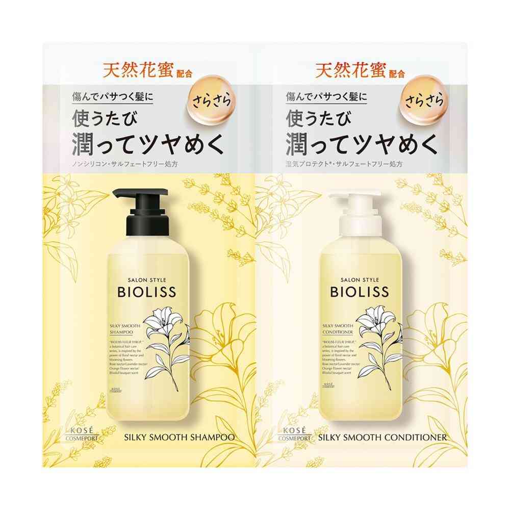 天然花蜜配合で、髪本来のしなやかさを引き出し、使うたびにうるおい・ツヤがアップするシャンプー&コンディショナー。 幸福感に包まれるブリスフルブーケの香り。 さらさら軽やかにまとまる髪へみちびく、シルキースムースタイプ。
