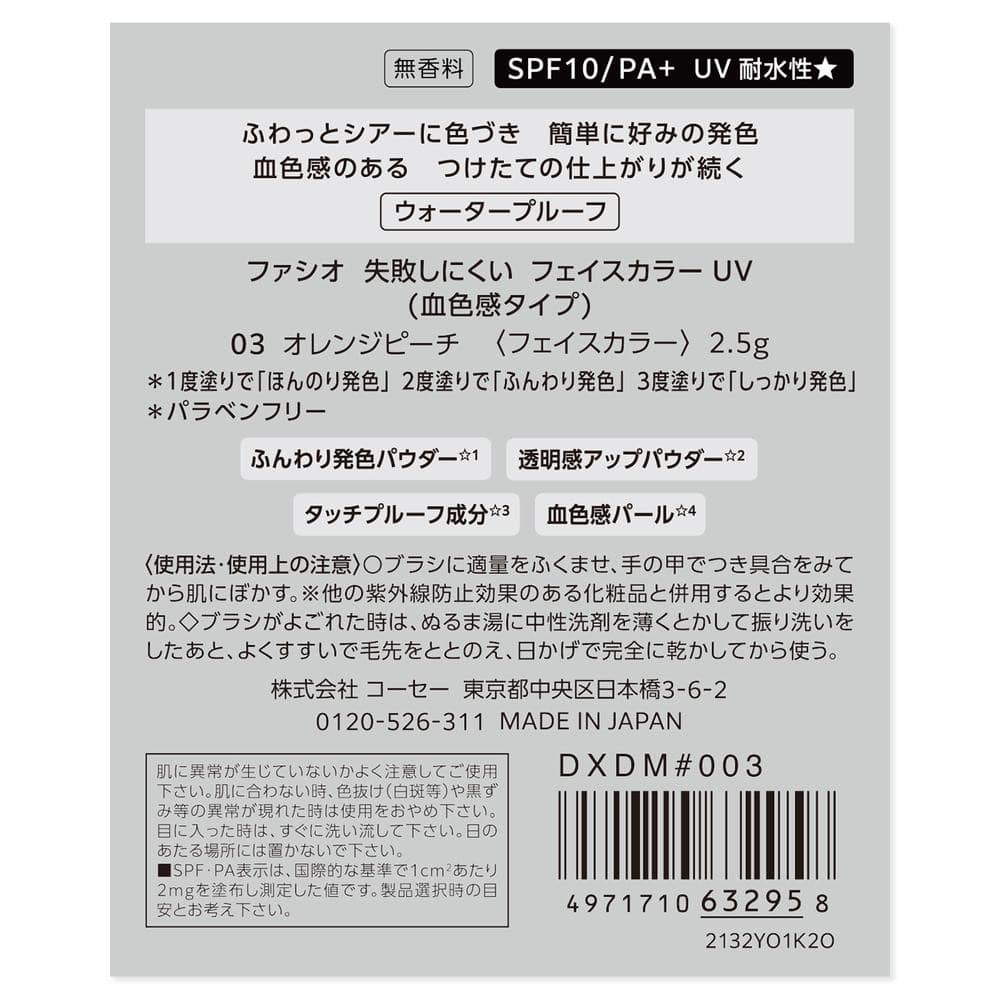 ファシオ、フェイスカラー、無香料、血色感、透明感、簡単