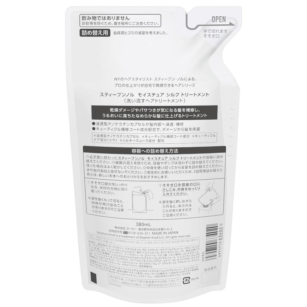 必ず使い終わったスティーブンノル モイスチュア シルク トリートメントの容器に詰め替えてください。 雑菌の混入を防ぐため、容器やポンプは洗わずに詰め替えてください。 洗った場合はよく乾かしてください。 中身を使い切ってから全量を詰め替えてください。 水や他の製品と混ぜないでください。 衛生的にお使いいただくため、3回程度詰め替えたあとは、新しい本体へのおとりかえをおすすめします。 飲み物ではありません。 誤飲等を防ぐため、置き場所にご注意ください。