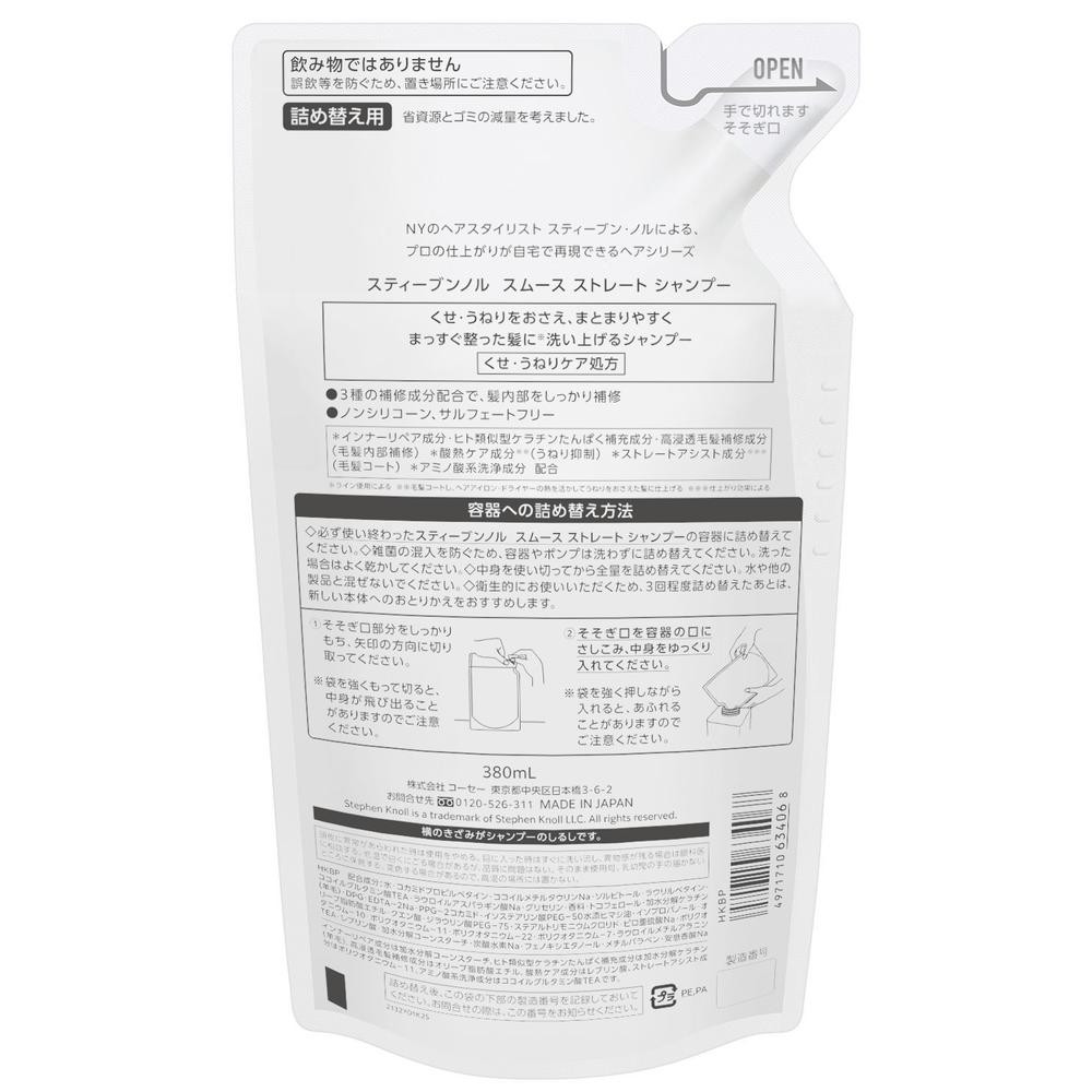 必ず使い終わったスティーブンノル スムース ストレート シャンプーの容器に詰め替えてください。 雑菌の混入を防ぐため、容器やポンプは洗わずに詰め替えてください。 洗った場合はよく乾かしてください。 中身を使い切ってから全量を詰め替えてください。 水や他の製品と混ぜないでください。 衛生的にお使いいただくため、3回程度詰め替えたあとは、新しい本体へのおとりかえをおすすめします。 飲み物ではありません。 誤飲等を防ぐため、置き場所にご注意ください。
