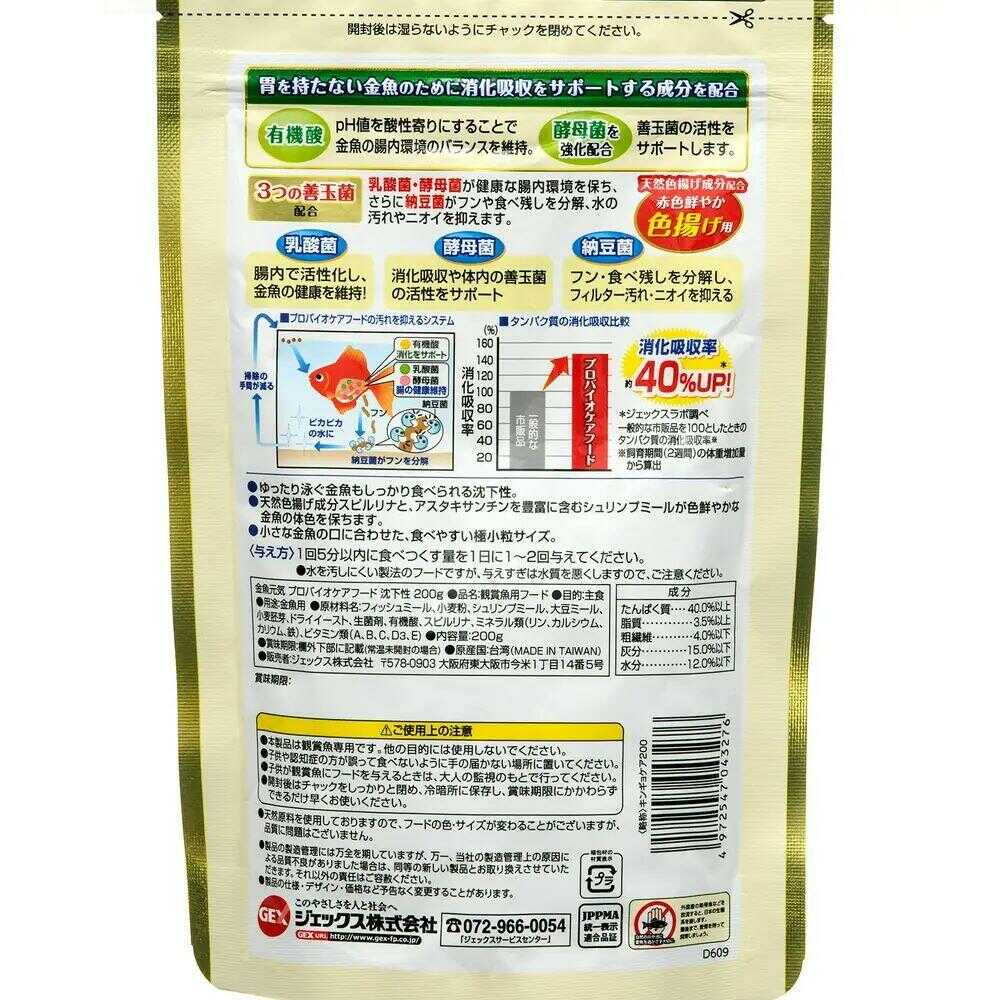 - > ジェックス 金魚元気 プロバイオケアフード 沈下性 200g