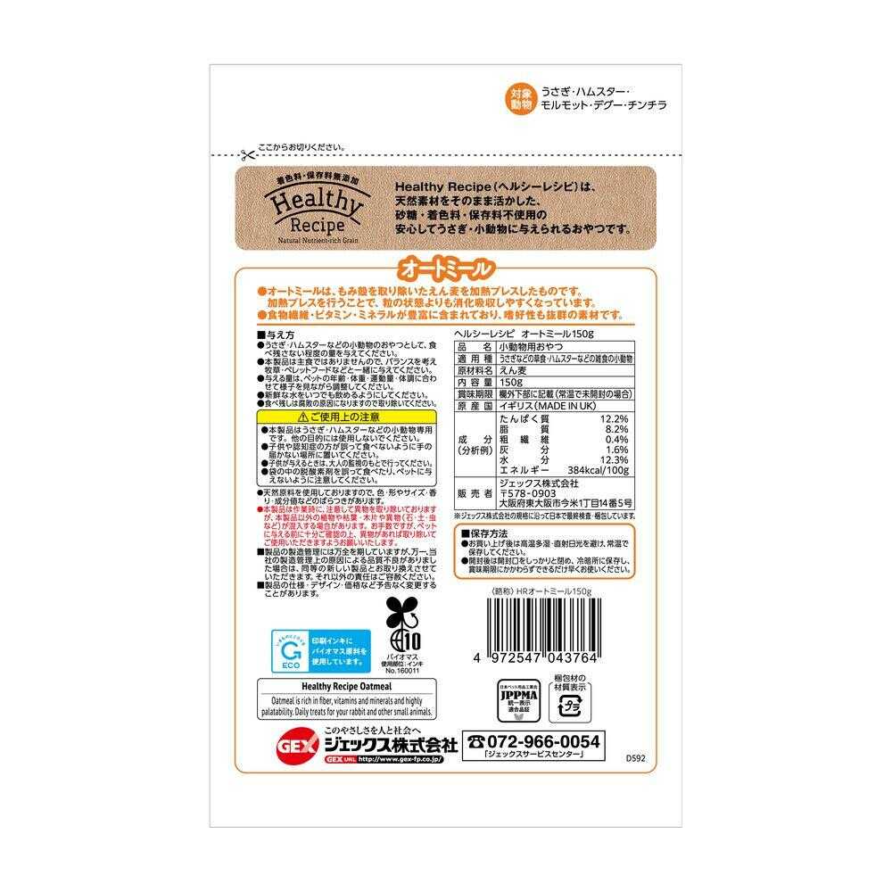 オートミールは、もみ殻を取り除いたえん麦を加熱プレスしたものです。 加熱プレスを行うことで、粒の状態よりも消化吸収しやすくなっています。 食物繊維・ビタミン・ミネラルが豊富に含まれており、嗜好性も抜群の素材です。 対象動物:うさぎ・ハムスター・モルモット・デグー・チンチラ