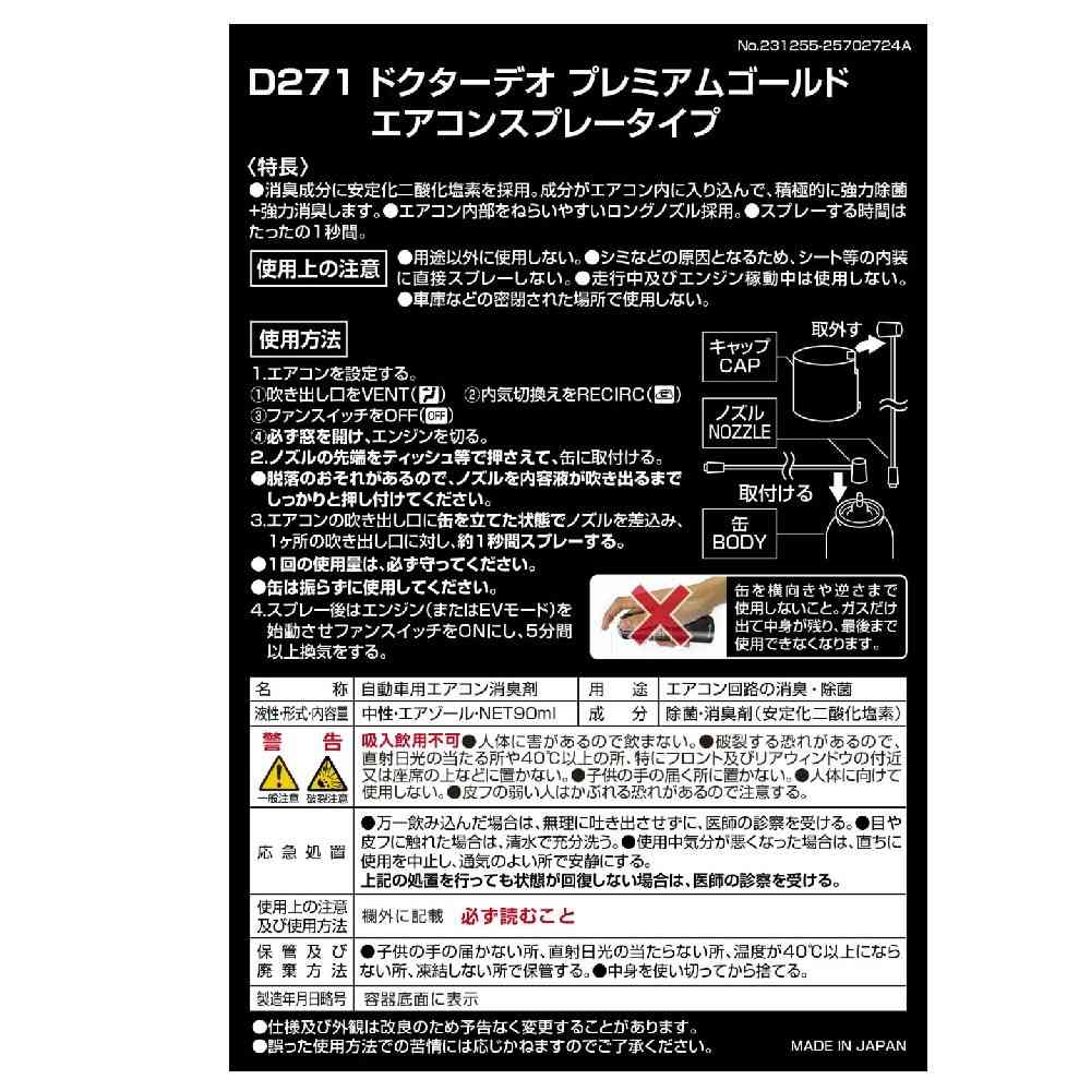 車、消臭、D271、ドクターデオ、プレミアムゴールド、エアコンスプレータイプ、無香