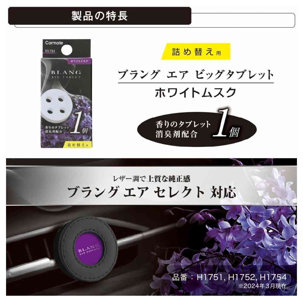 車、芳香剤、carmate、詰め替え用、H1761、ブラング、エア、ビッグタブレット、ホワイトムスク